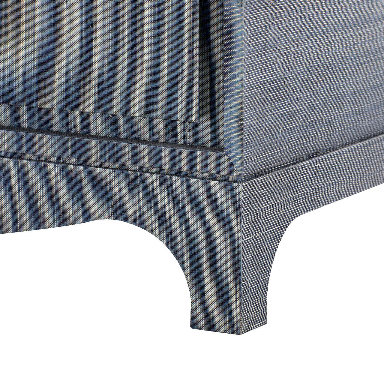 The Barrett Collection is defined by its crisp geometry and refined detailing. Each piece features a deeply inset drawer front, creating subtle shadow lines and visual depth within its rectilinear frame. Wrapped in clear lacquered grasscloth, the surface highlights natural texture with a clean, modern finish. A gently curved decorative apron softens the silhouette, adding a graceful touch that balances the structured form. Satin bronze-finished hardware completes the look, adding a warm metallic accent that enhances the collection’s tailored aesthetic. With its thoughtful proportions and material richness, the Barrett Collection offers a sophisticated take on everyday storage and style.