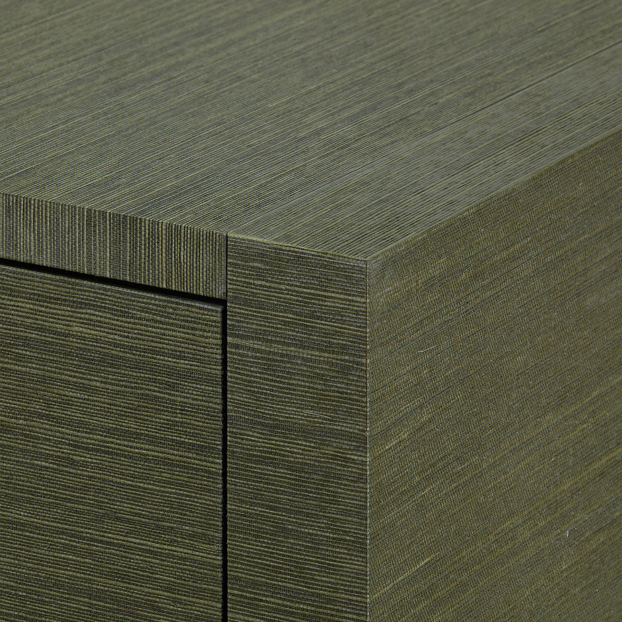 The Camden Collection blends clean-lined sophistication with subtle natural charm. Each piece is carefully wrapped in grasscloth, highlighting its smooth silhouette. Polished brass sabots at the feet add a gleaming, tailored touch, while the top drawer is slightly smaller—perfect for storing petite luxuries. Each drawer is finished with a sculptural pull shaped like a twig, offering an earthy, organic twist to this elegant design. The result is a collection that feels both grounded and gracefully elevated.