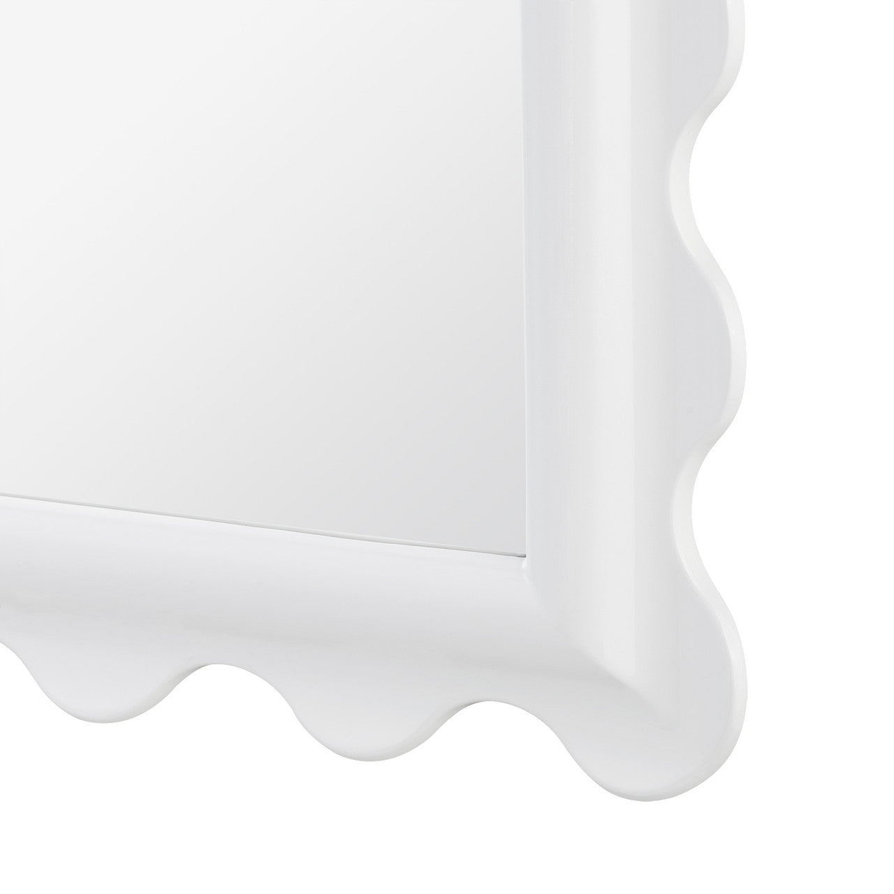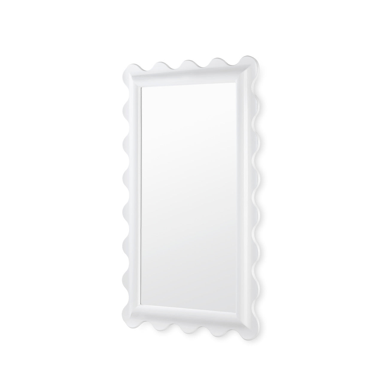 The Celine Mirror brings a playful sense of movement to the wall with its wavy, sculptural border. Crafted from lacquered resin, it has a glossy, high-shine finish that gives the piece a bold, polished look while remaining lightweight and easy to hang. Its rectangular shape is softened by the undulating frame, creating a stylish contrast that feels fresh and modern.