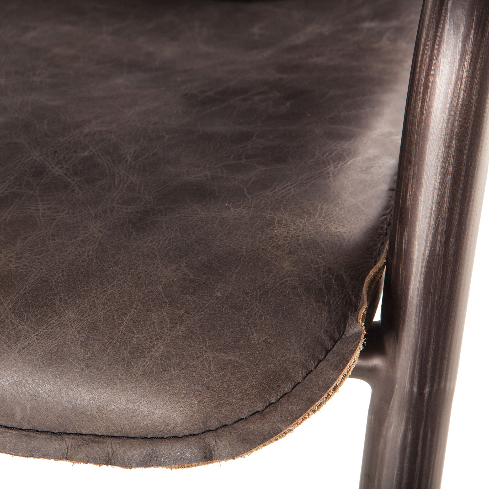 • Chair's seat and seat back are naturally distressed antique ebony leather