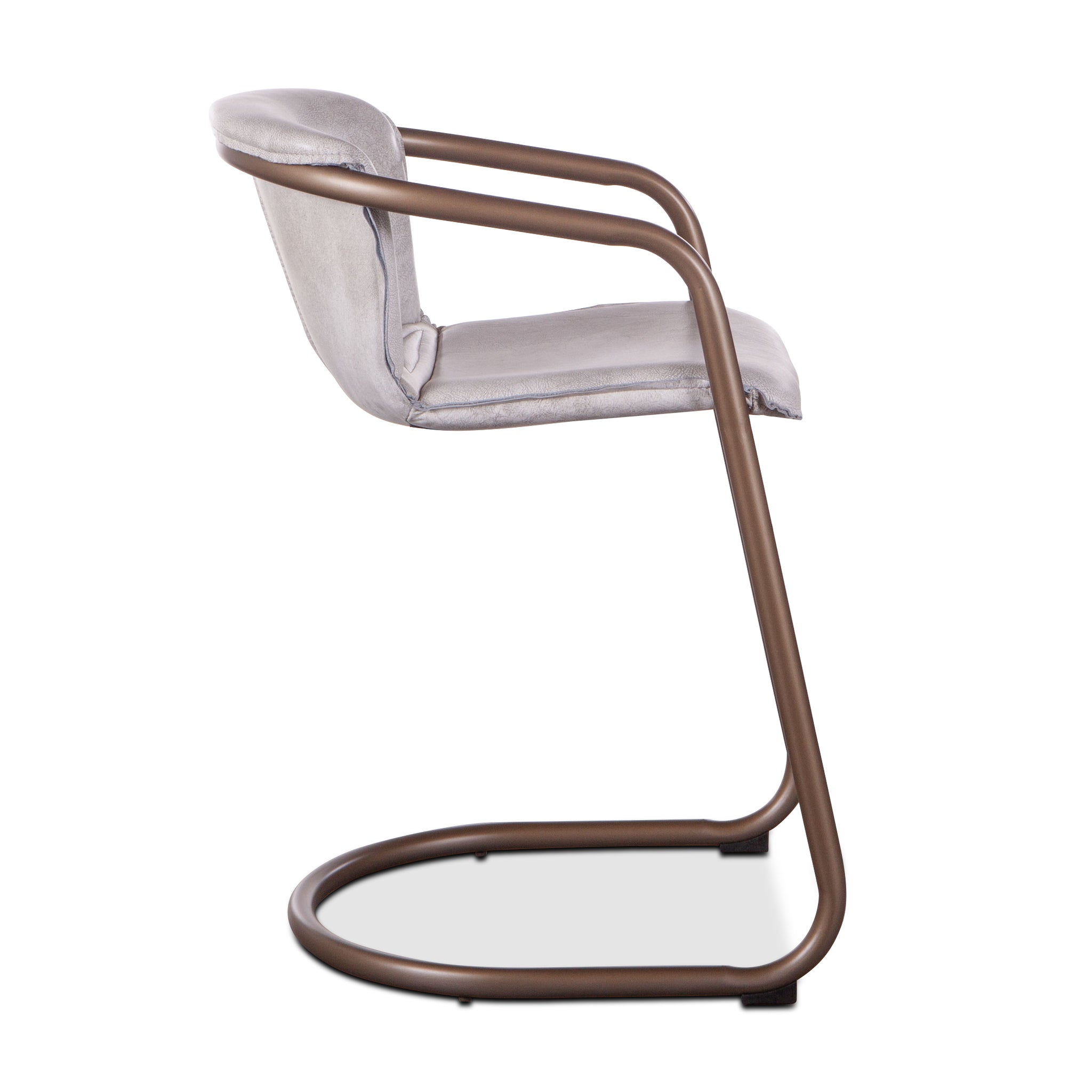 Our Chiavari collection of retro-inspired chairs and sofas will add vintage charm to your dining room, kitchen, or living room. The distressed vintage white, 100% top grain leather seat has a soft feel for ultimate comfort, while the exposed trim provides unique flair. The U-shaped steel frame and legs in an antique brushed bronze finish includes levelers with caps to protect all types of flooring. Combine with your favorite counter-height gathering table for a casual dining space or add a few to your island or counter space for the perfect work area. This pre-assembled counter chair is ready-to-use and of the finest quality, and with its classic design and elegance, it will make an effortless addition to any home.