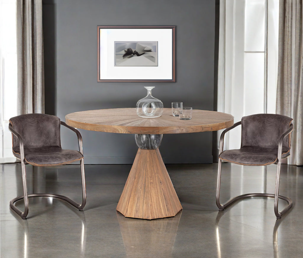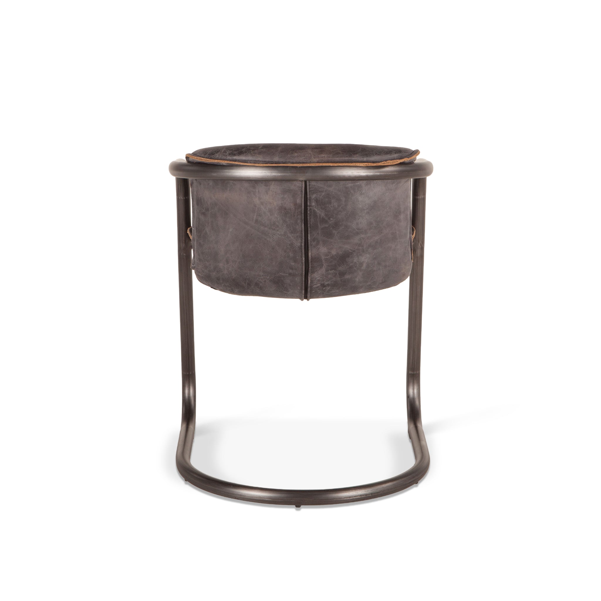 Our Chiavari collection of retro-inspired chairs and sofas will add vintage charm to your dining room, kitchen, or living room. The distressed antique ebony leather seat has a soft feel for ultimate comfort, while the exposed trim provides vintage flair. The U-shaped steel frame and legs in rustic, brushed gunmetal finish includes levelers with caps to protect all types of flooring. Combine with your favorite dining or kitchen table for a casual dining space, pair with a modern desk for a stylish work space, or adjoin with a side table for a comfortable cocktail and reading nook. This pre-assembled dining chair is ready-to-use and of the finest quality, and with its classic design and elegance, it will make an effortless addition to any home.