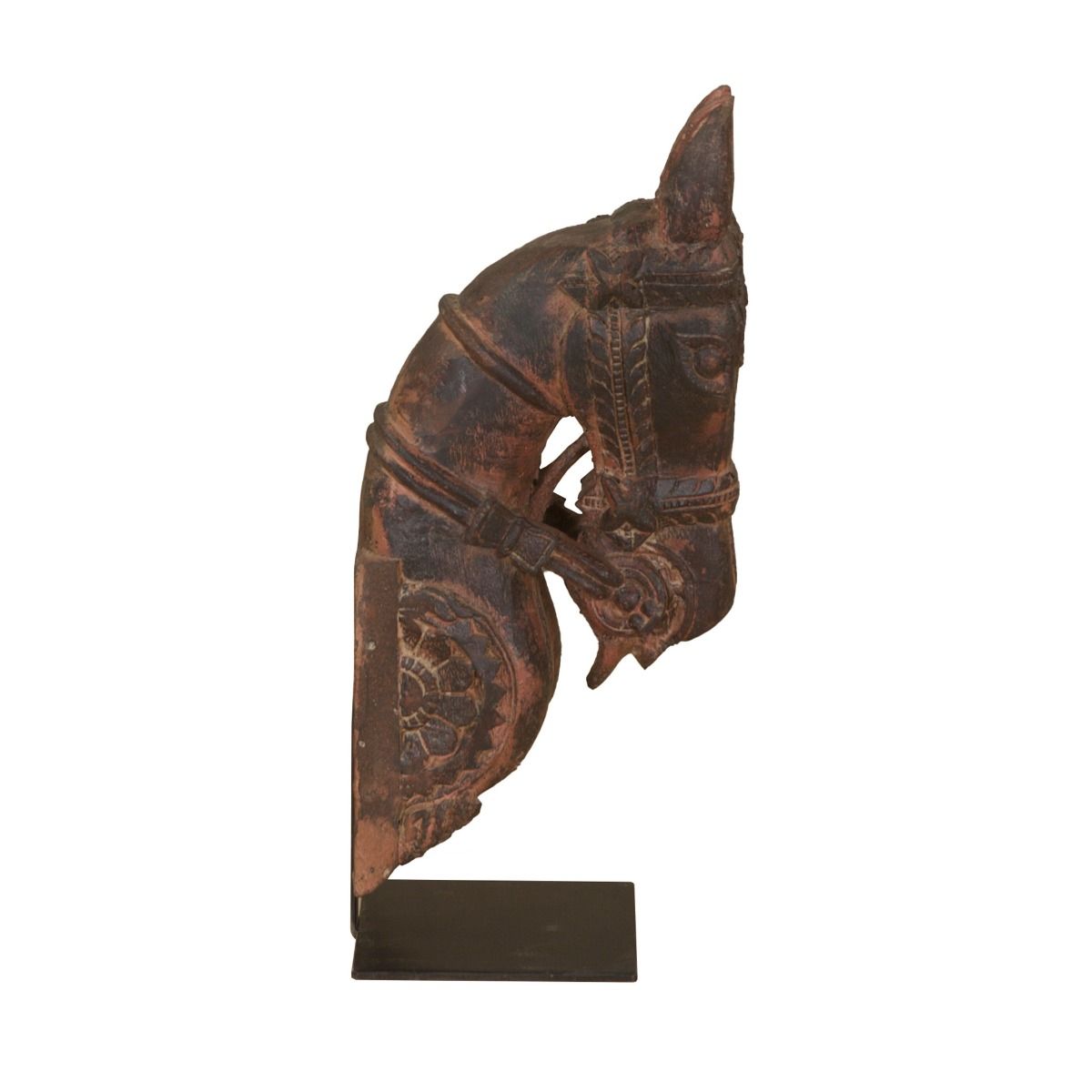 Bring a sense of global heritage into your home with this beautifully hand-carved horse head sculpture. Made from reclaimed wood and fixed on a reclaimed iron stand, this piece evokes the spirit of age-old craftsmanship while capturing the strength and grace of a horse. The design carries a distinct cultural elegance, drawing on traditional artistry that adds depth and opens your space to endless stories. Because these are made of reclaimed materials, no two pieces are exactly alike—each one showcases natural variations in color, texture, and finish. These unique traits are intentional and contribute to the authentic character of every item.