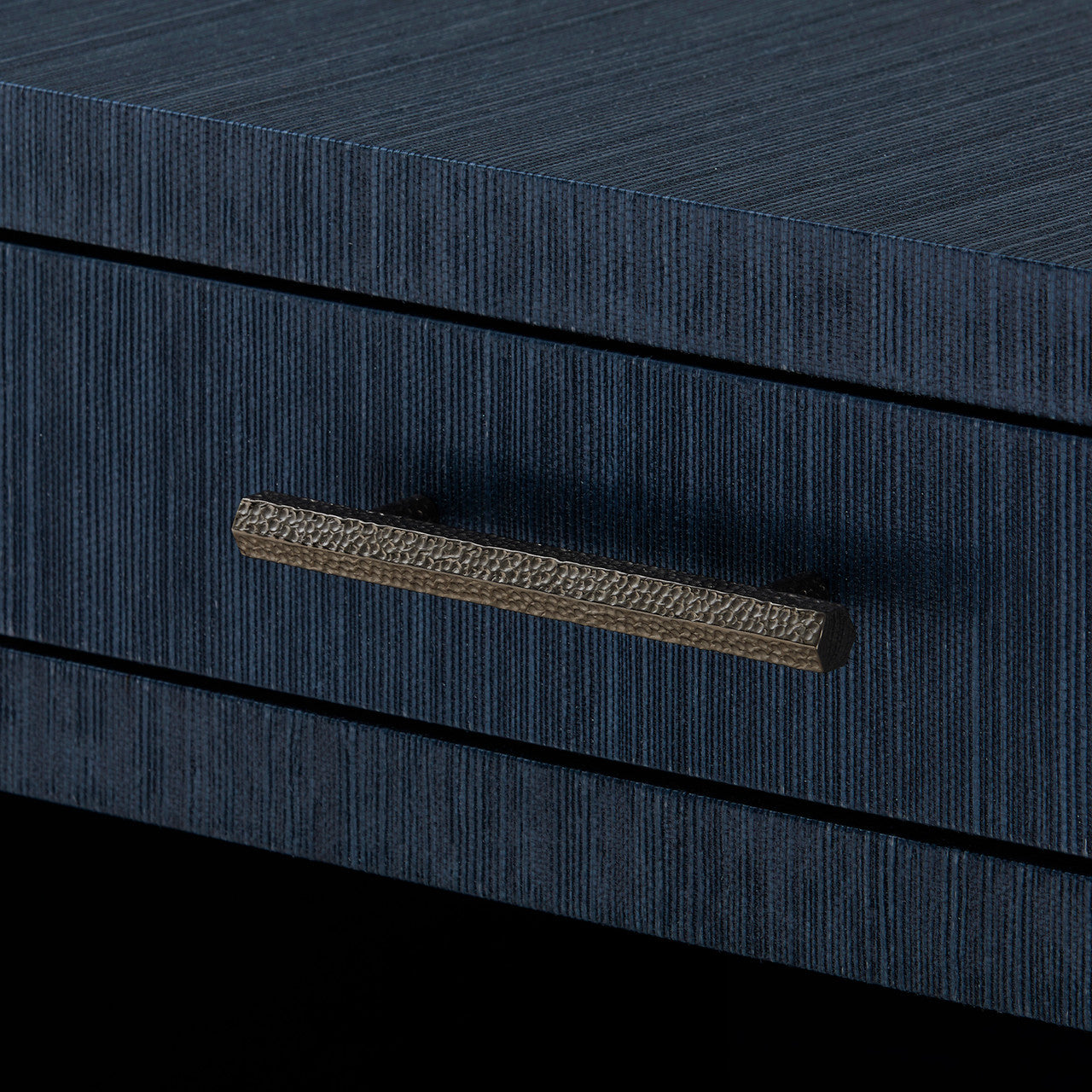 The Florence 2-Drawer Side Table offers clean-lined simplicity with thoughtfully layered details. Wrapped in clear lacquered grasscloth, its rectilinear form is accented by warm satin bronze pulls for a touch of understated shine. Two drawers sit above and below a fully open shelf, creating a balanced mix of concealed and display storage. The interior is fully lined in matching grasscloth, showcasing meticulous craftsmanship and a seamless finish.