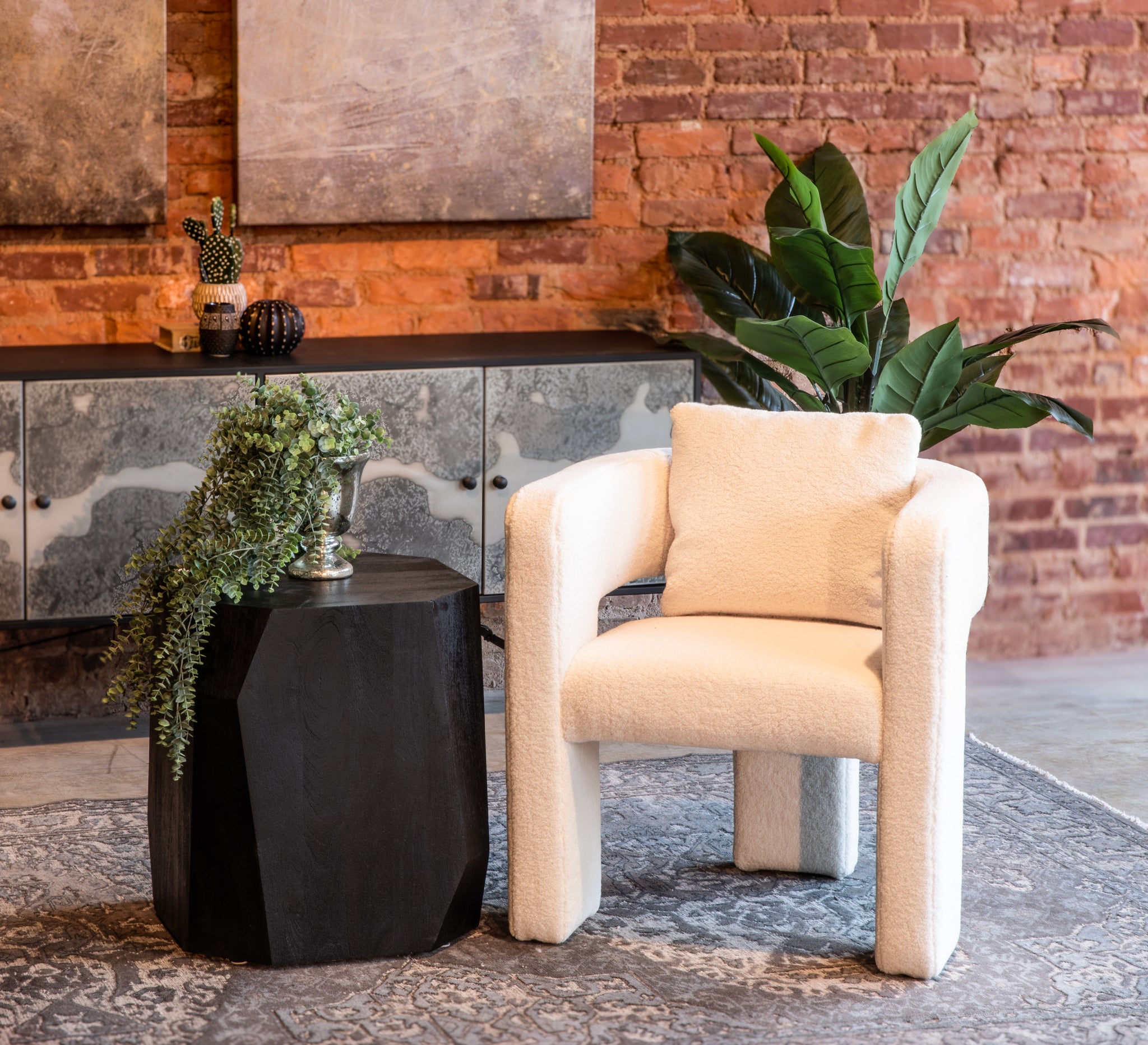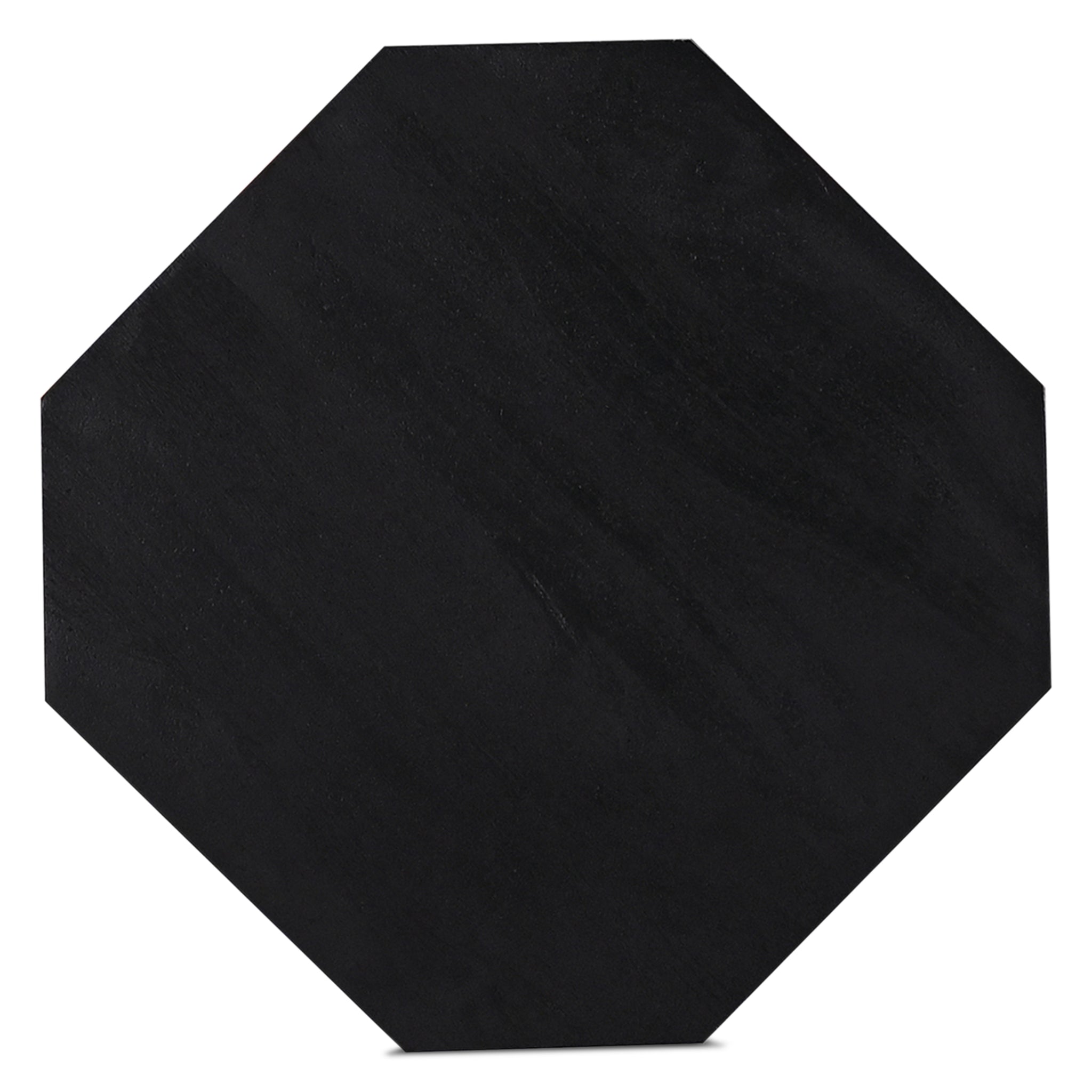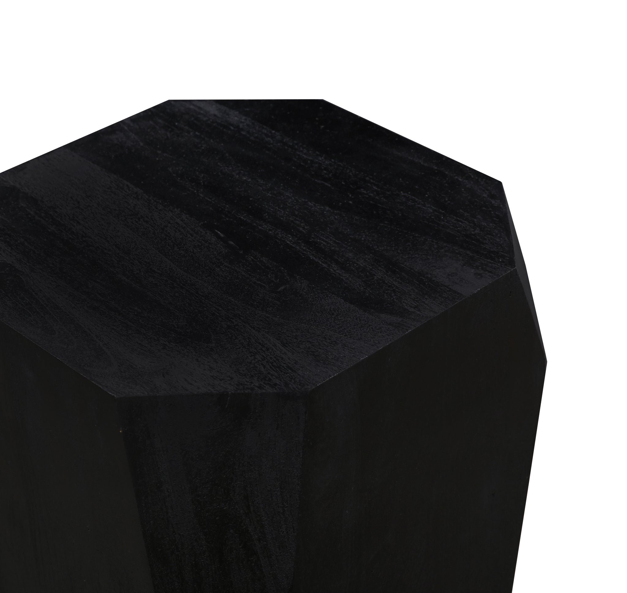 Redefining modern chic style, the Helena Collection features bold geometric tables made with solid mango wood in a distressed black finish. Harnessing the raw beauty of volcanic basalt, these uniquely designed pieces showcase rich wood grain and sleek modern design. This contrast between natural solid wood textures and the striking black finish ensures that each piece is both functional and very durable. Robust shaping gives the tables in this collection an eye catching flair, while also seamlessly blending minimalist design.