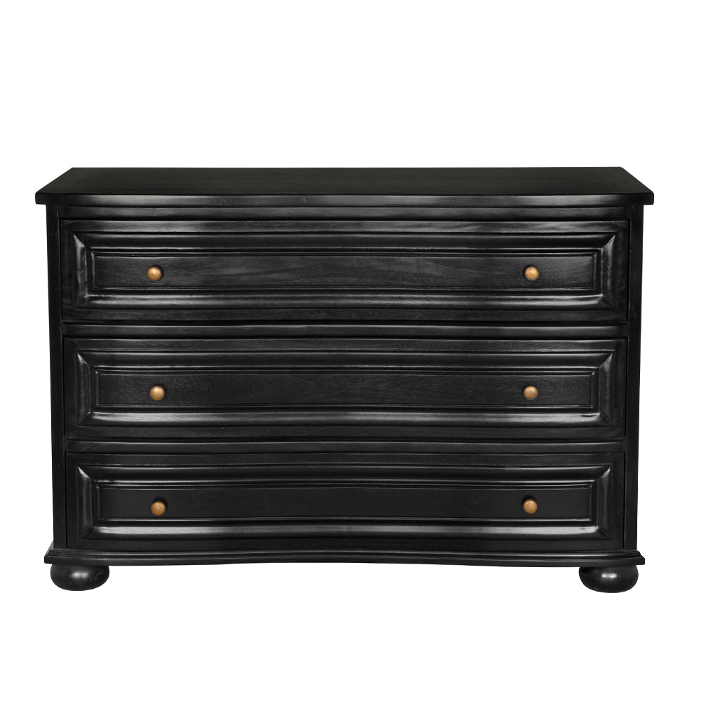 The Lauren Dresser in hand-rubbed black is an ode to craftsmanship—mahogany wood and brass accents come together in a design that feels both classic and current. Its deep finish and graceful proportions make it a quiet statement of luxury.