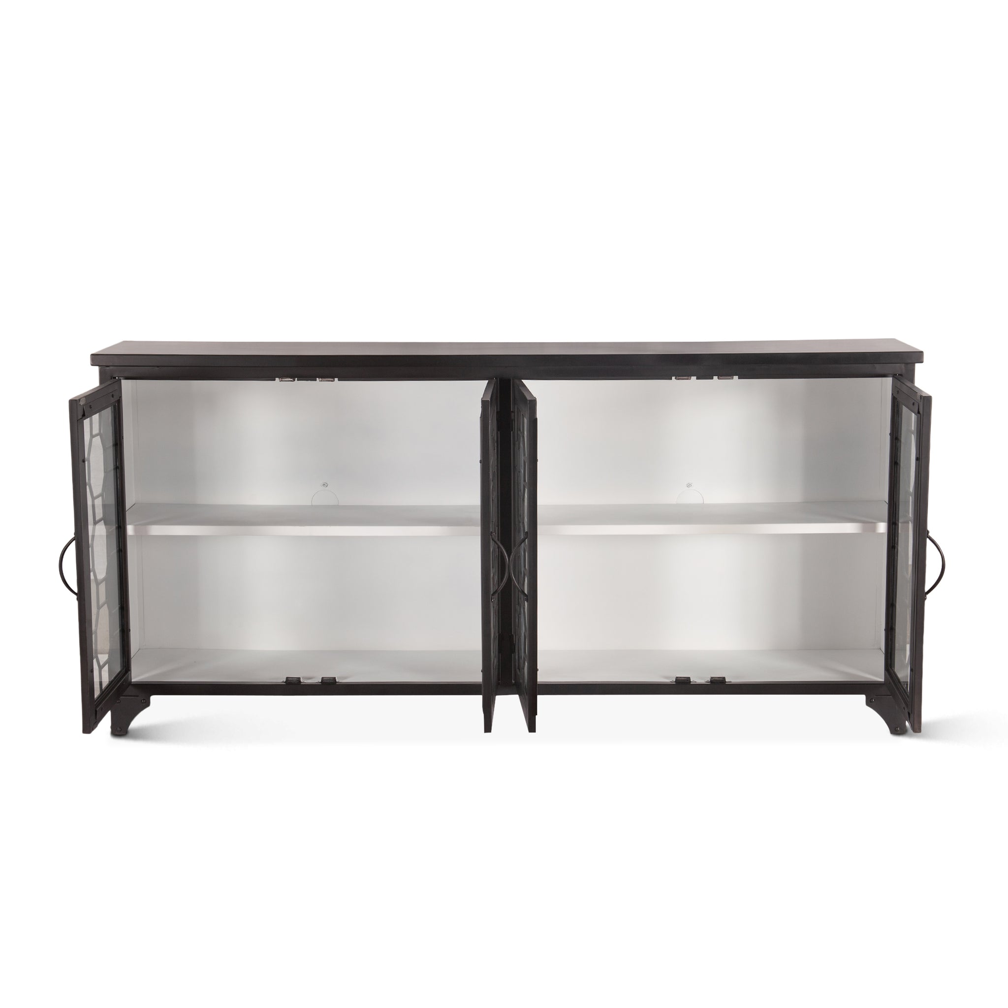 The Neapolitan collection provides gorgeous modern-vintage style to your home décor. Industrial iron and glass construction offers both durability and luxury, while the matte black finish adds a timeless edge. With its classic yet modern design, these pieces will merge seamlessly into any modern living or dining space.