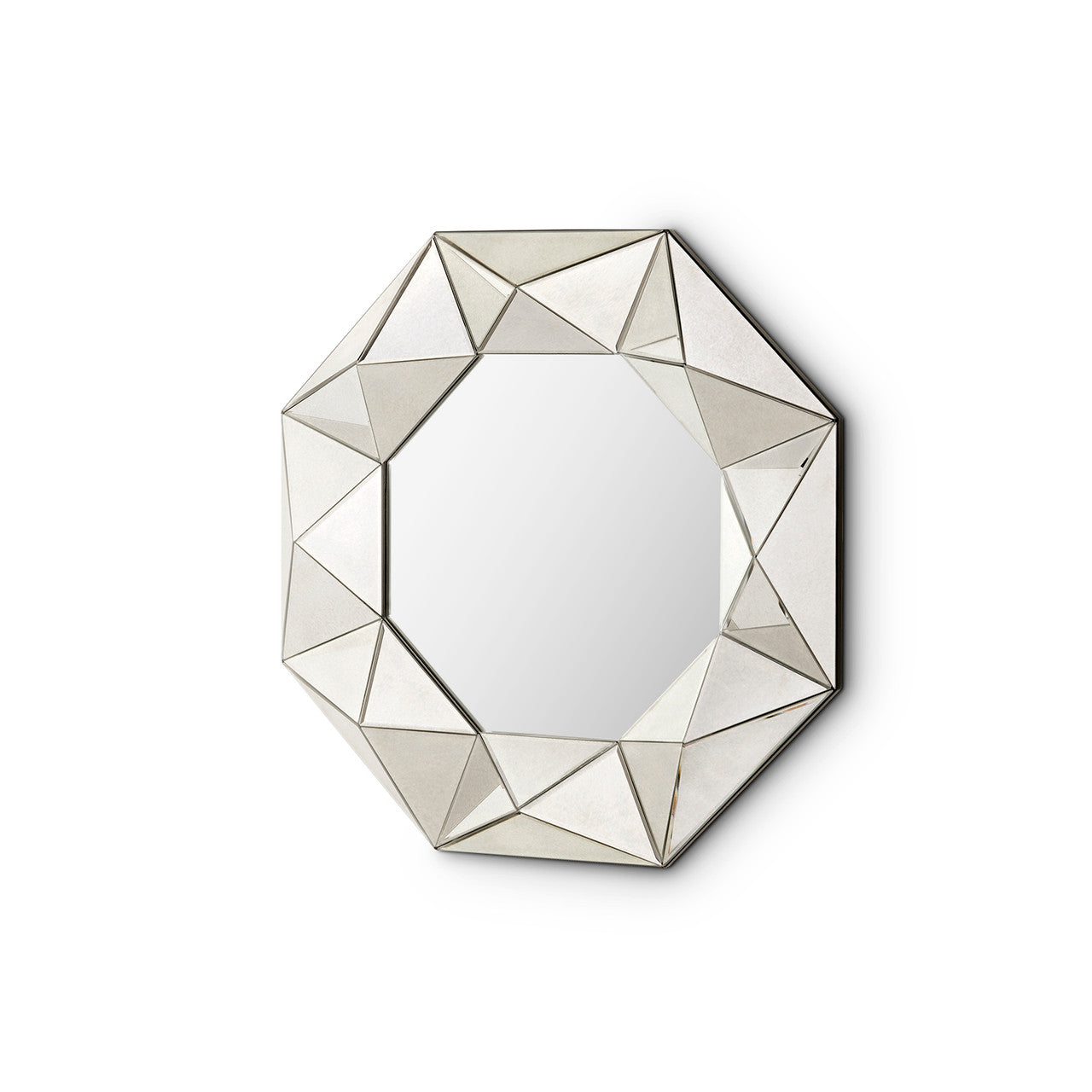 The Phoenix Mirror is a captivating statement piece that brings brilliance and artistry to any space. At its heart is a crisp, clear glass panel, surrounded by an octagonal frame crafted from antique mirrored glass. The faceted geometry and shimmering hues reflect light in dynamic, jewel-like patterns, infusing the room with a warm, radiant glow. Equal parts mirror and objet d’art, the Phoenix is designed to dazzle.