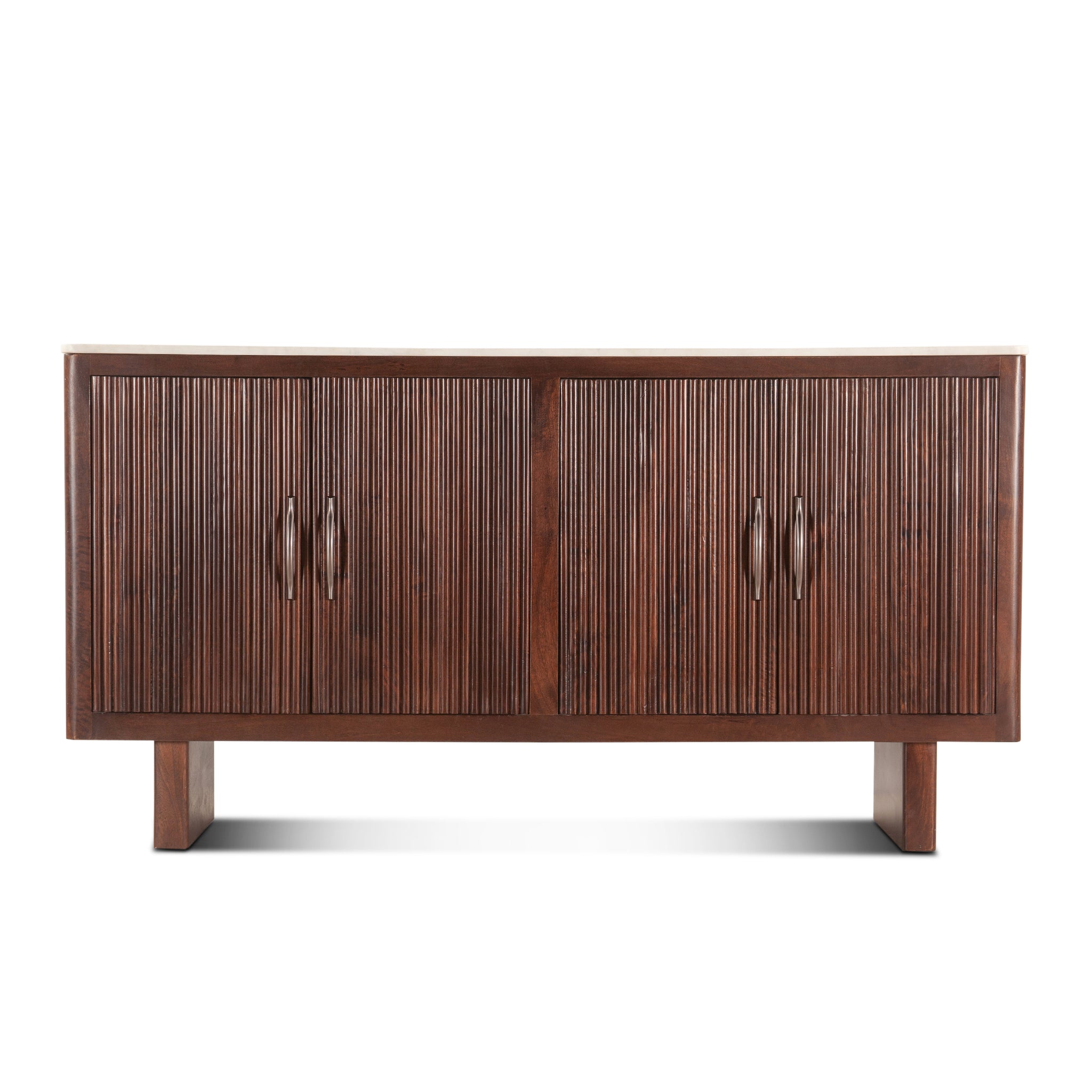 A harmonious fusion of timeless elegance and mid-century modern aesthetics, the Positano Collection is crafted with meticulous attention to detail, This collection celebrates the natural beauty of solid fluted mango wood and showcases luxurious white marble tops. Inspired by the serene coastal charm of the Italian village of Positano, each piece exudes a sense of tranquility and sophistication.