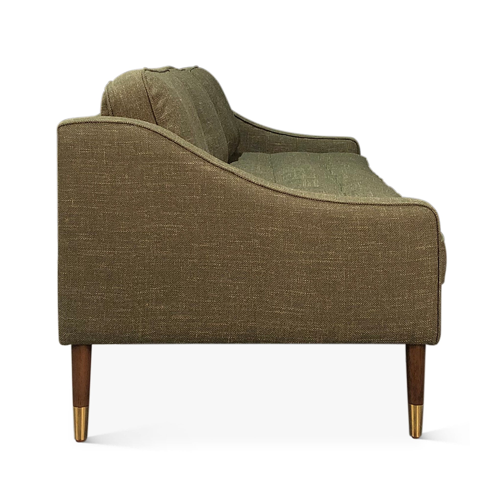 The Raleigh Collection features a stylish three-seat sofa and a matching armchair, both upholstered in a luxurious green chenille fabric. With clean lines, wooden legs, and the iconic charm of mid-century style, the Raleigh Collection effortlessly balances vintage appeal with modern elegance. Perfect for a variety of living spaces, these pieces combine a functional elegance with a pop of color, making it a standout choice for any room.