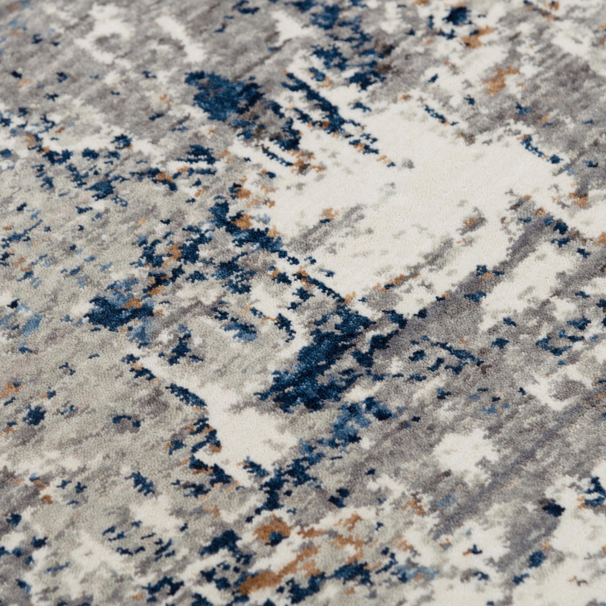 This Rizzy Home Anatolia Collection rug in abstract hues of grey and blue, makes an undeniable statement of ultramodern decor in any room. Its 100% recycled polyester hybrid construction allows for easy care and durability. The contemporary transitional design can anchor a variety of interior decor styles. Hand sheared and hand washed for added softness, this rug is not only functional, but defines glamorous sophistication.