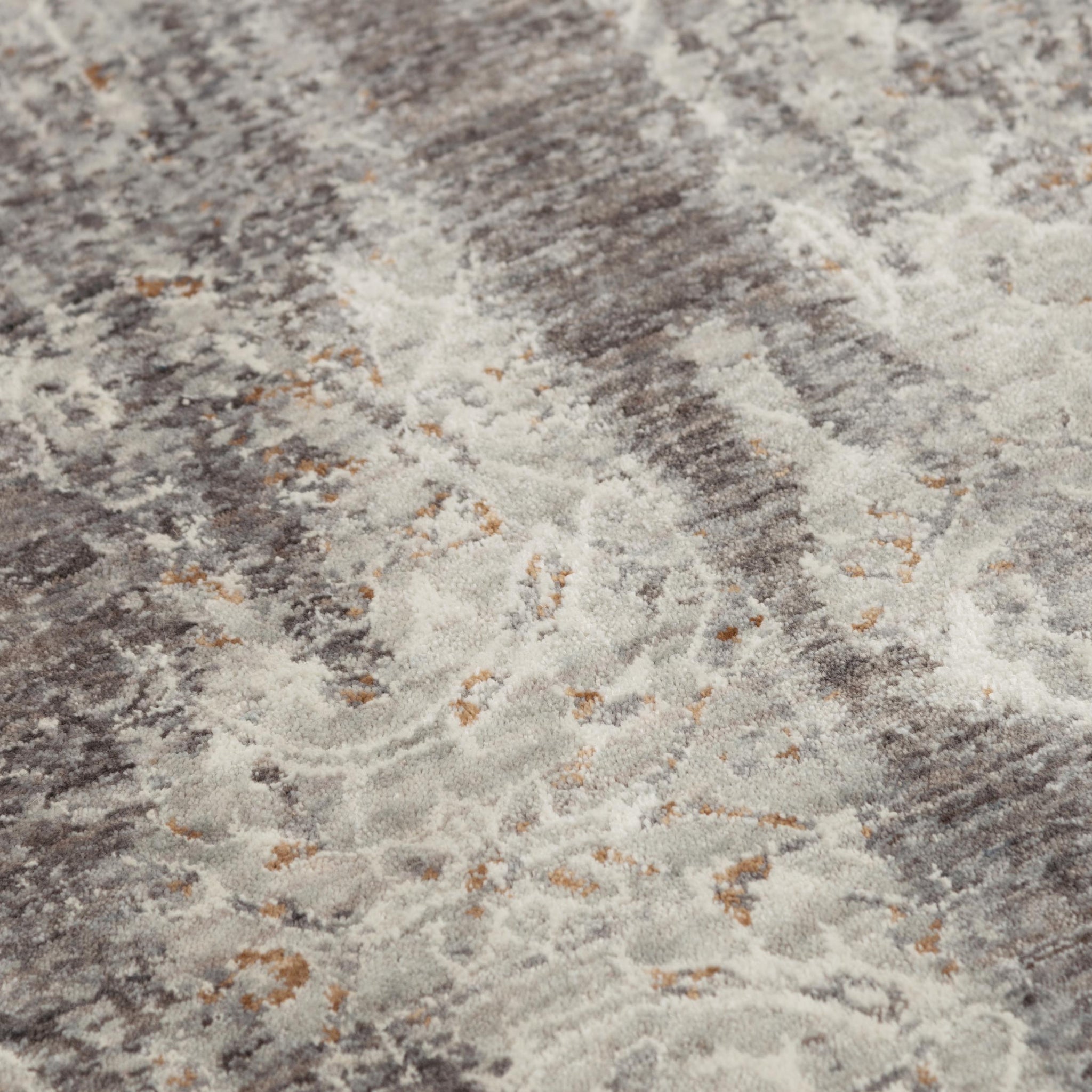 This Rizzy Home Ankara Collection rug in abstract hues of slate gray and ivory makes an undeniable statement of contemporary decor in any room. Its 100% recycled polyester hybrid construction allows for easy care and durability. The ultramodern color wash design is abstract and transitional, with an ability to anchor a variety of interior decor styles and motifs. Hand sheared and hand washed for added softness, this rug is not only functional but creates a center piece of timeless sophistication in any room.