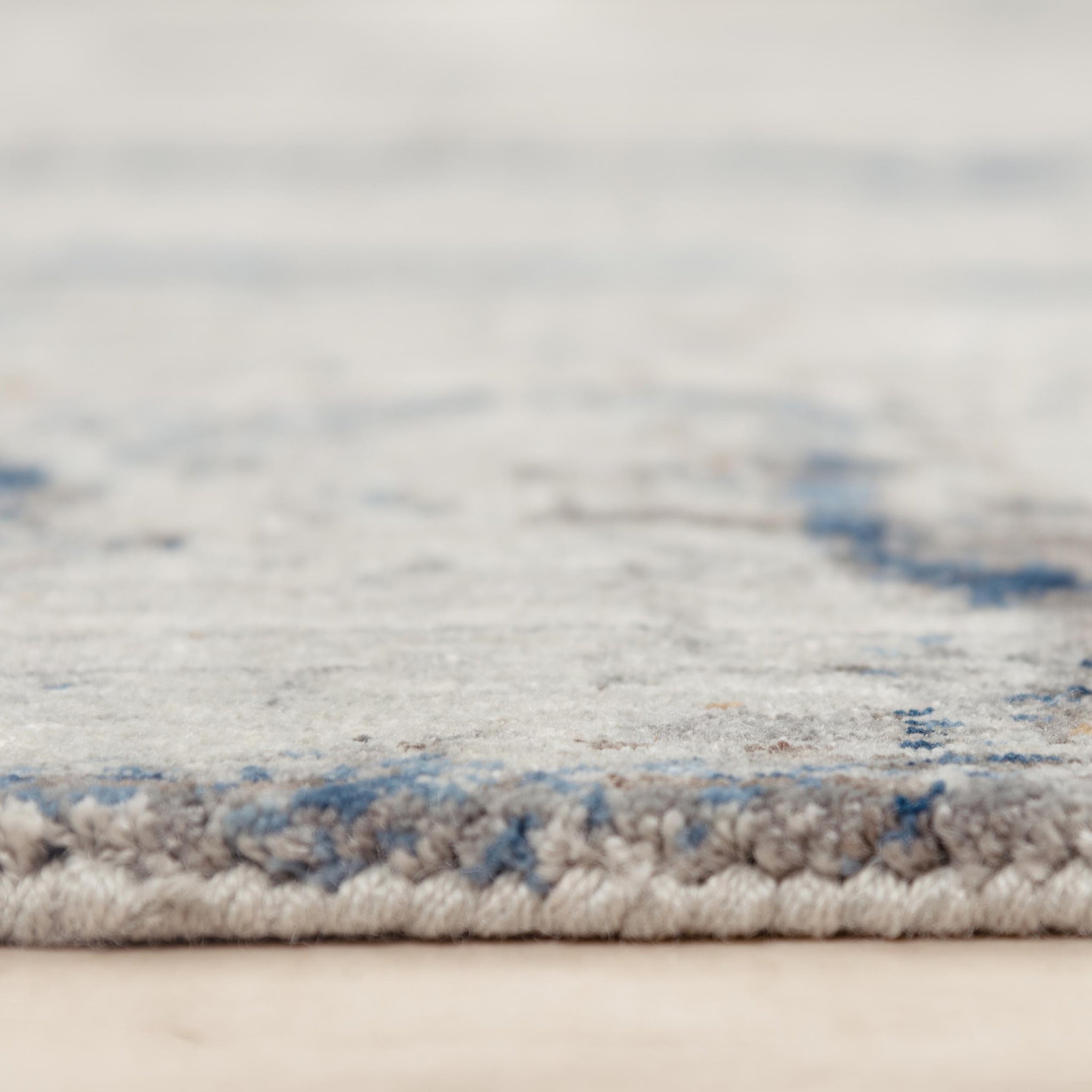 Our Rizzy Home, exclusive Wool Hybrid collections have taken the rug landscape to a whole new level. We are now proud to introduce the second wave of Rizzy Hybrids. Phase two hybrids are power loomed using Recycled Polyester in place of Wool to create a look so close to hand knotted rugs at a fraction of the cost. The Ankara collection is loomed at our machine plant in India using Recycled Polyester and then shipped to our handmade facility where it is hand washed, hand sheared and hand surged, just as fine hand knotted rugs have been finished for centuries. On trend tonal coloration is accented with a shimmer of crisp Ivory Durapoly material to make the Ankara collection a true showstopper!