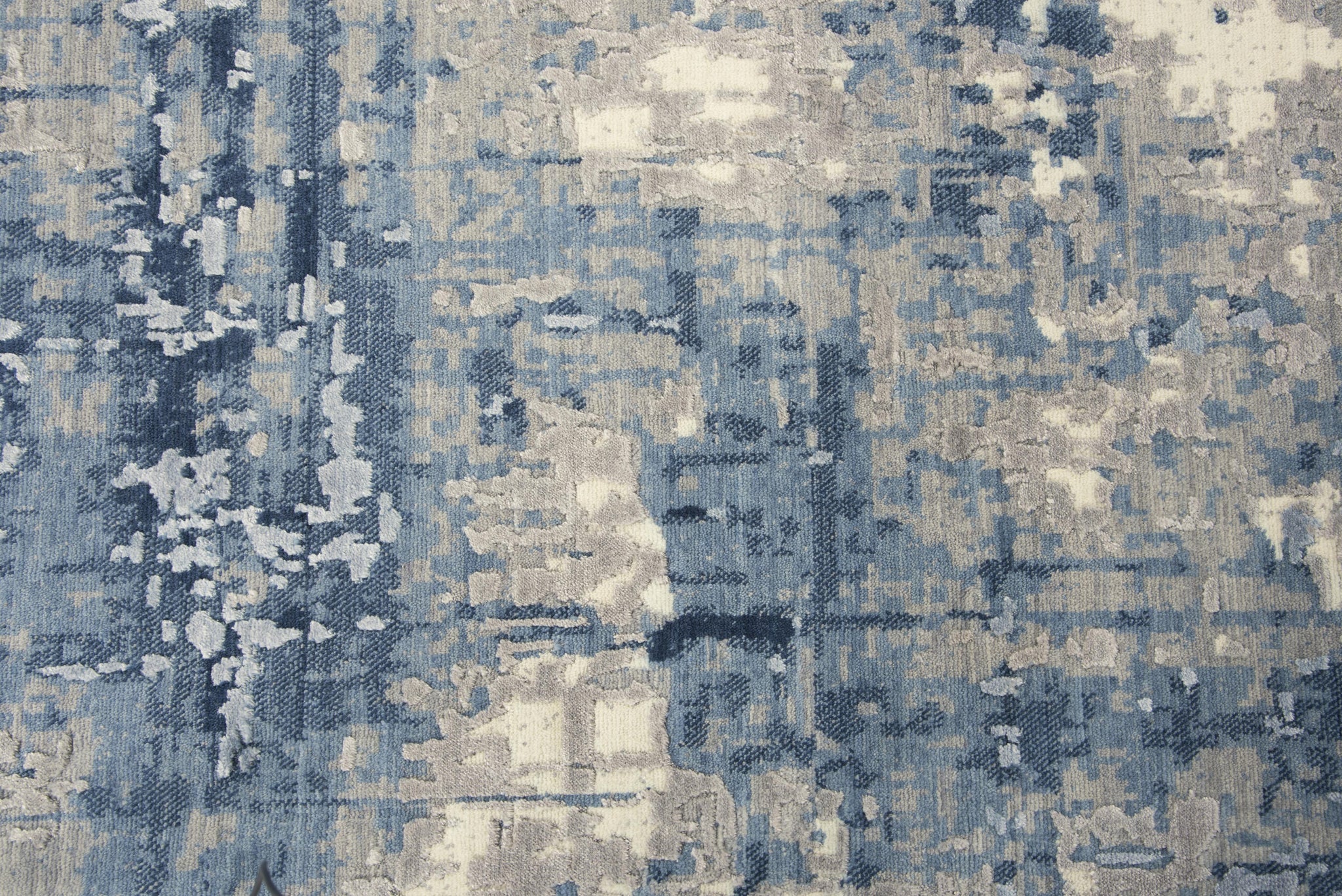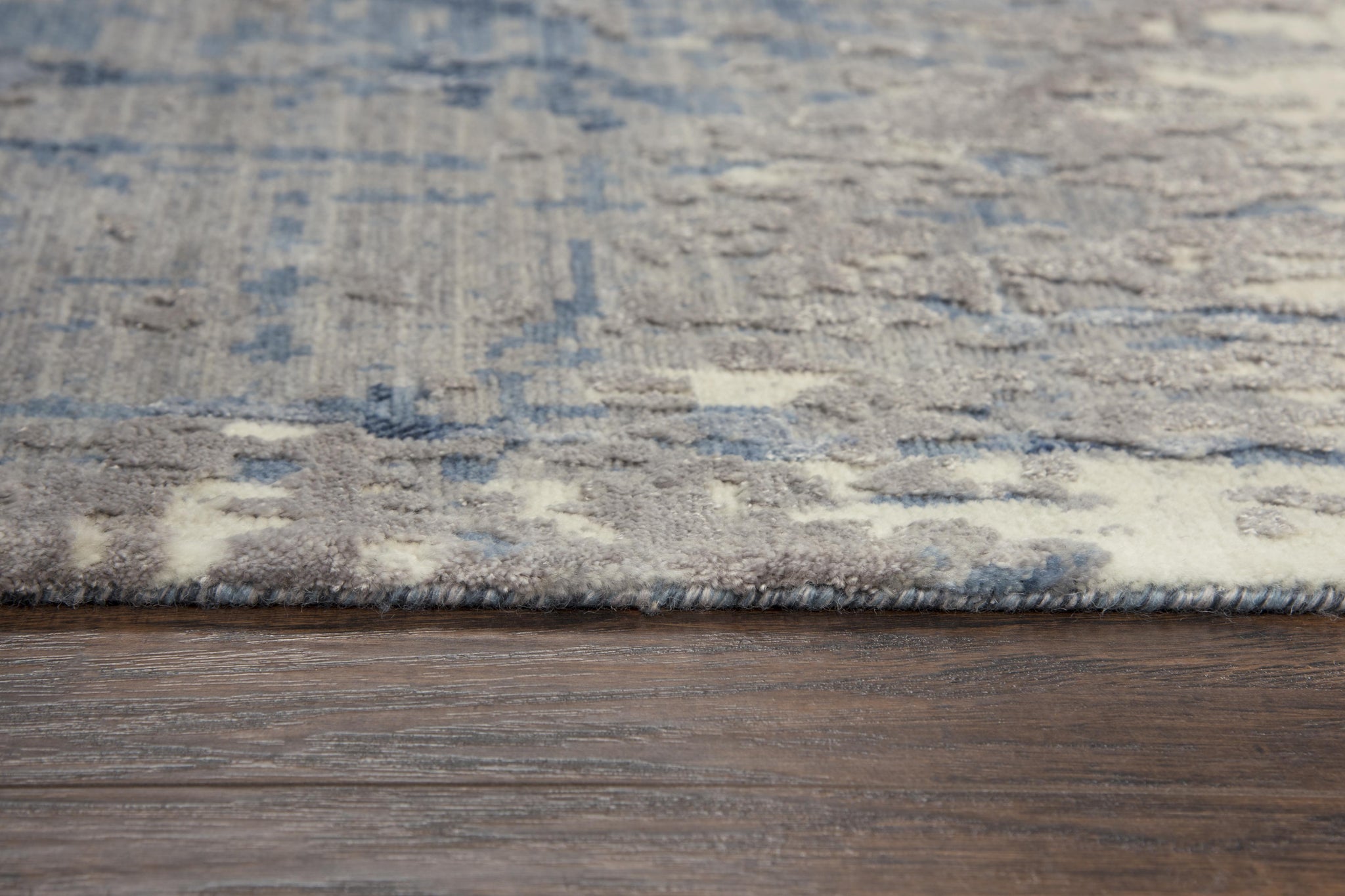 Astonishing steel blue New Zealand wool blends with subtle grey and neutral ivory to make this Rizzy Home Artistry Rug an ultimate finishing touch to your modern or contemporary home or office décor. Hand-carved pile adds dimension while hand-washing of the fibers adds softness in all the right places. Plus, the 20-percent Tencel fiber adds a lovely sheen. The edges are hand-surged offering a distinct border on the rug.