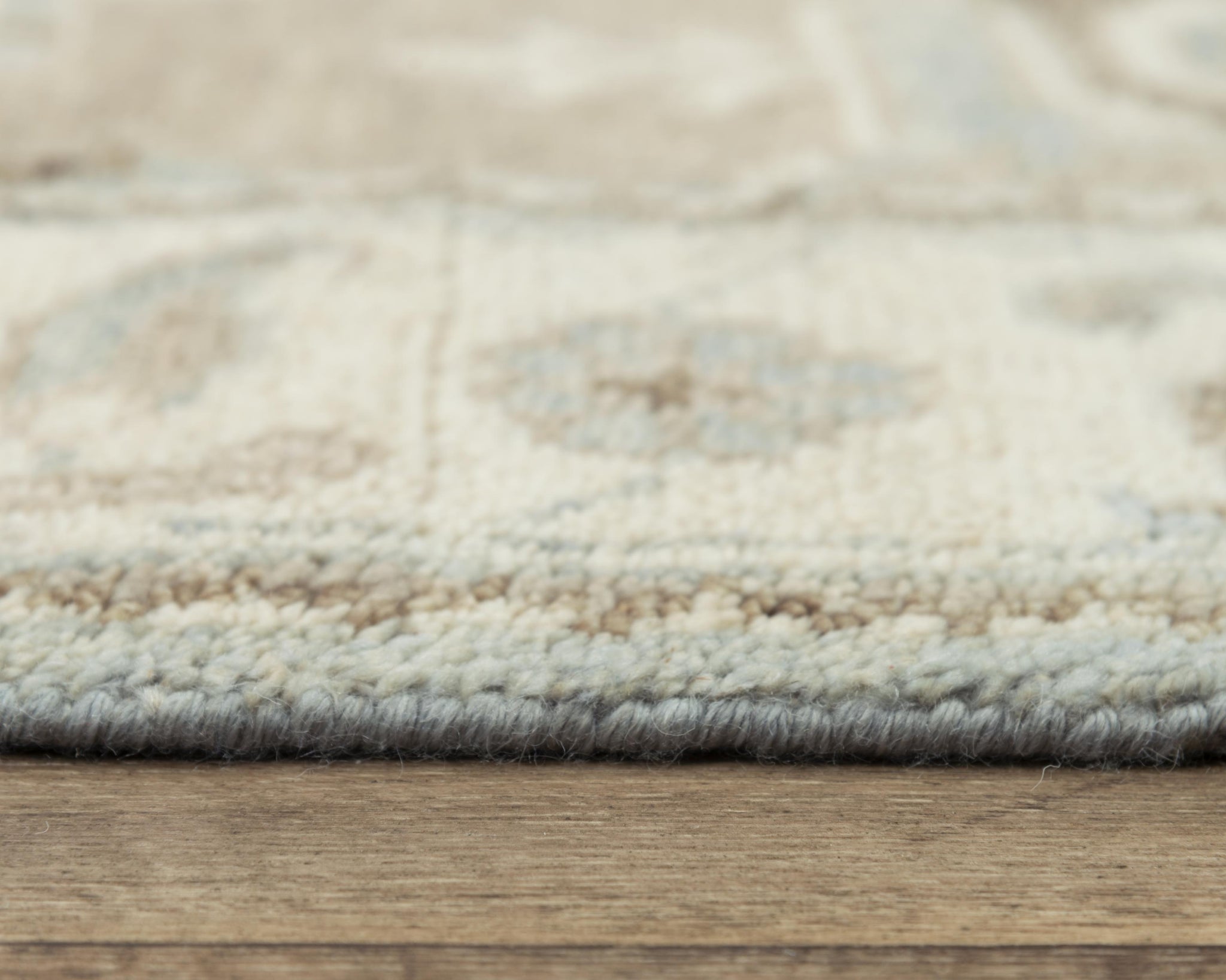 A generous, soft gray blossom bursts from the center of this Rizzy Home Belmont Floral Medallion Rug leading your eye to an exquisite border of smaller flowers and buds, finished with fringe on two ends. Highlighted by shades of brown and grey, this rug will be a great addition to your traditional style home or office décor. Hand-washed, hand knotted, and hand-spun wool contributes to its softness and durability.