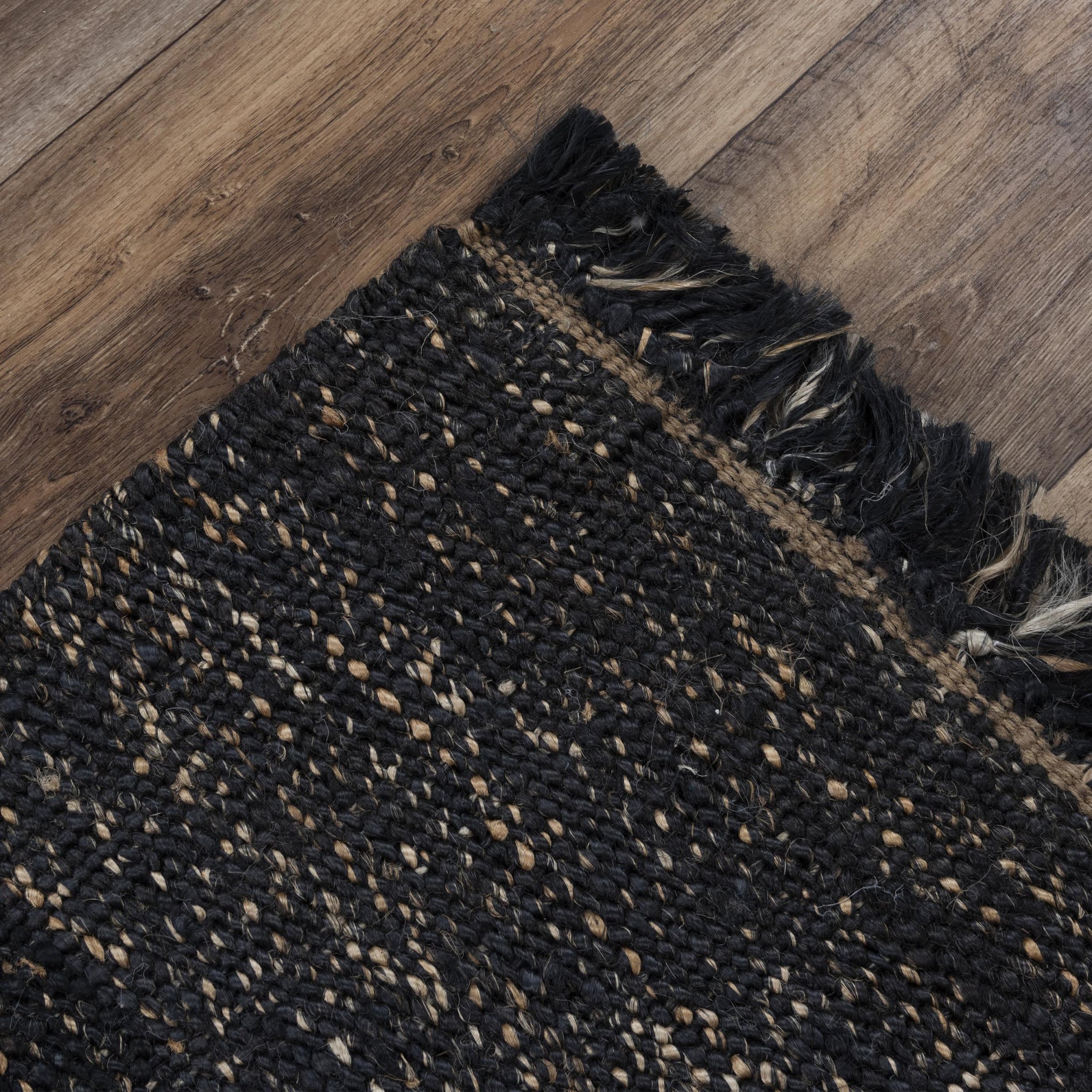Add that hint of drama to your casual room with the Rizzy Home Bengal Black Dhurrie Rug. Made with 100-percent jute that has been dyed to a deep black, the thick, natural fibers are hand-woven and hand-surged to create the striking Bohemian style of this piece. This rug can be a beautiful focal point in any room in your home. It is also easy to clean with only a broom.