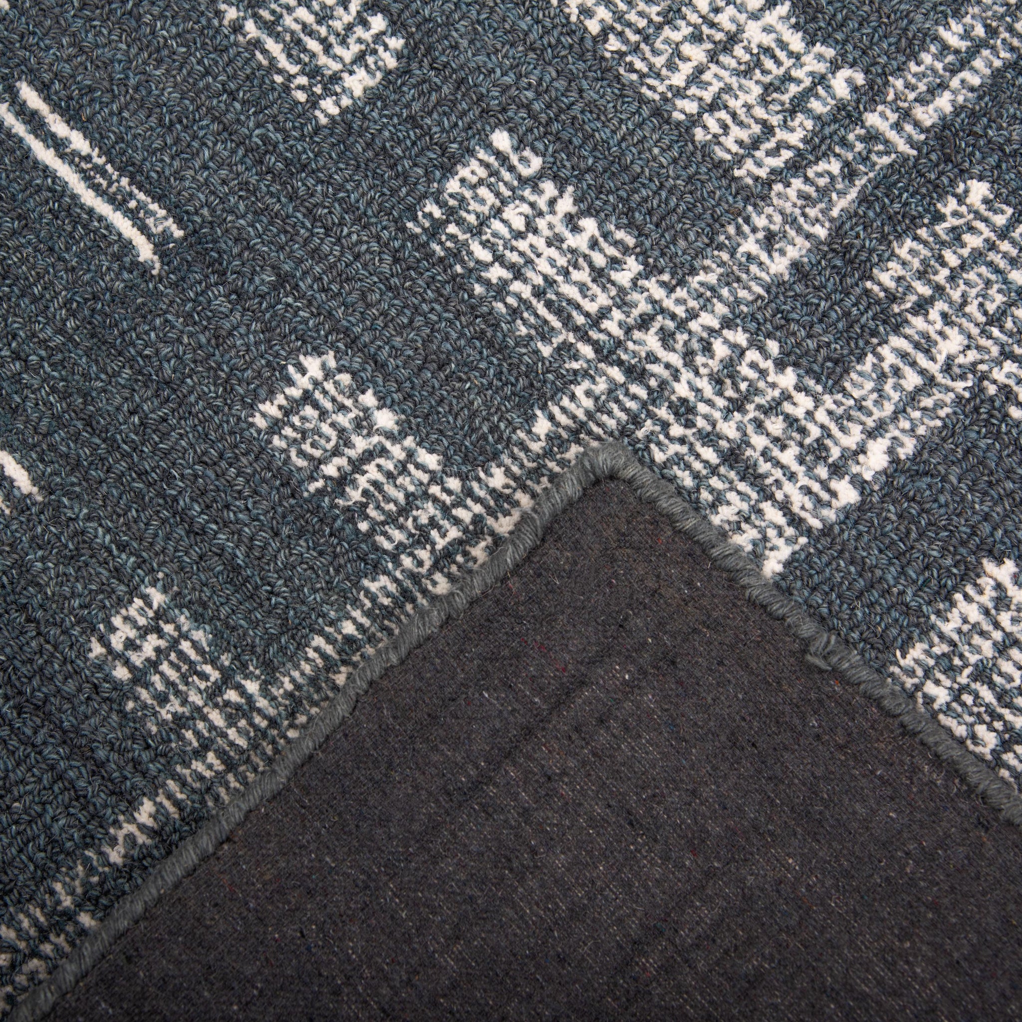 Introducing the Rizzy Home's Bixby Collection, a pinnacle of contemporary sophistication. Elevate your space with our meticulously crafted rug featuring a captivating blend of cut and loop pile for dynamic texture and lasting durability. Crafted from 100% premium wool in a stunning dark blue and ivory colorway, this rug exudes chic style and modern elegance with abstract lines in an eclectic pattern. Designed with practicality in mind, it includes a sturdy cotton backing for stability, ideal for high-traffic areas. Whether in a living room, bedroom, or office, experience the fusion of form and function with this exquisite rug, crafted in India to bring gorgeous luxury to your home.