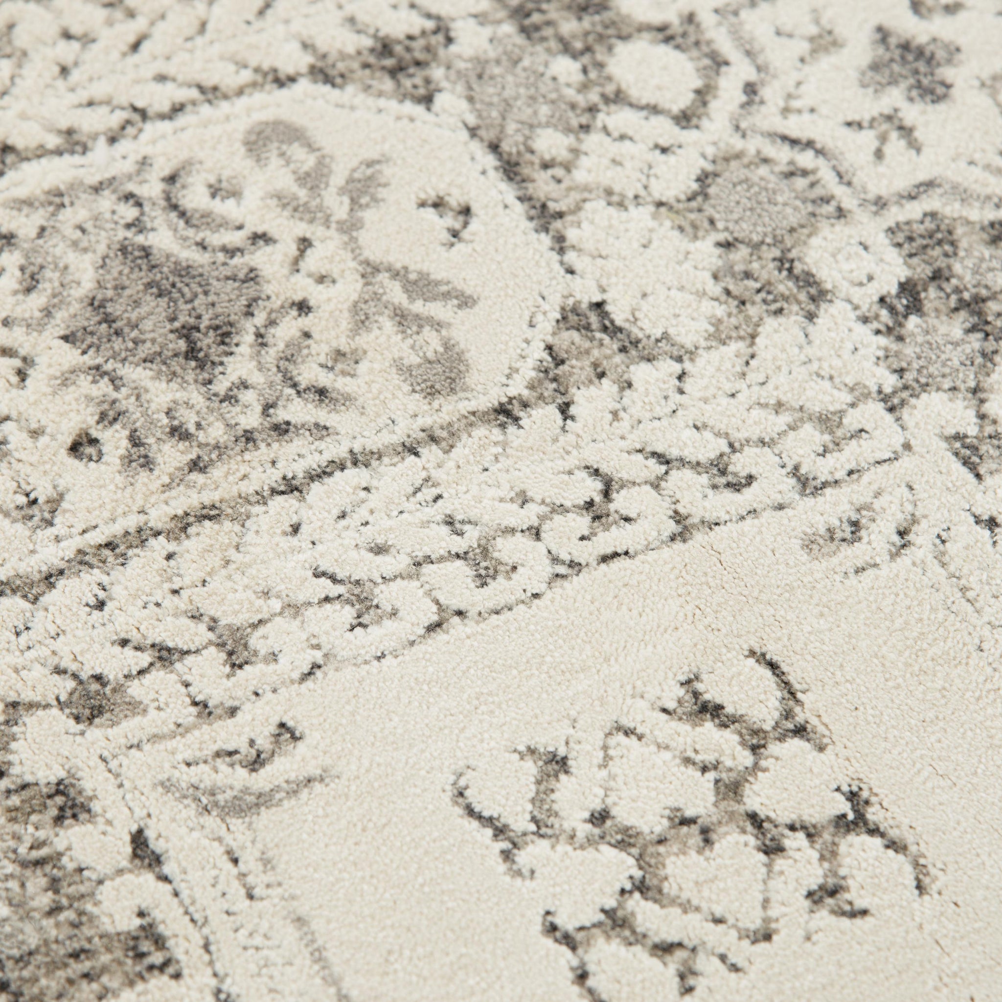 Collectors of fine antiquities will cherish this Rizzy Home Calabria Ivory and Grey Rug, patterned after age-old Persian artistry with ornate blocks. The neutral tones of the 100-percent polyester fiber will blend well in any room of your transitional or contemporary style décor. This rug is power-loomed for durability, bound securely on all edges, and has cut pile for extra softness for your feet.