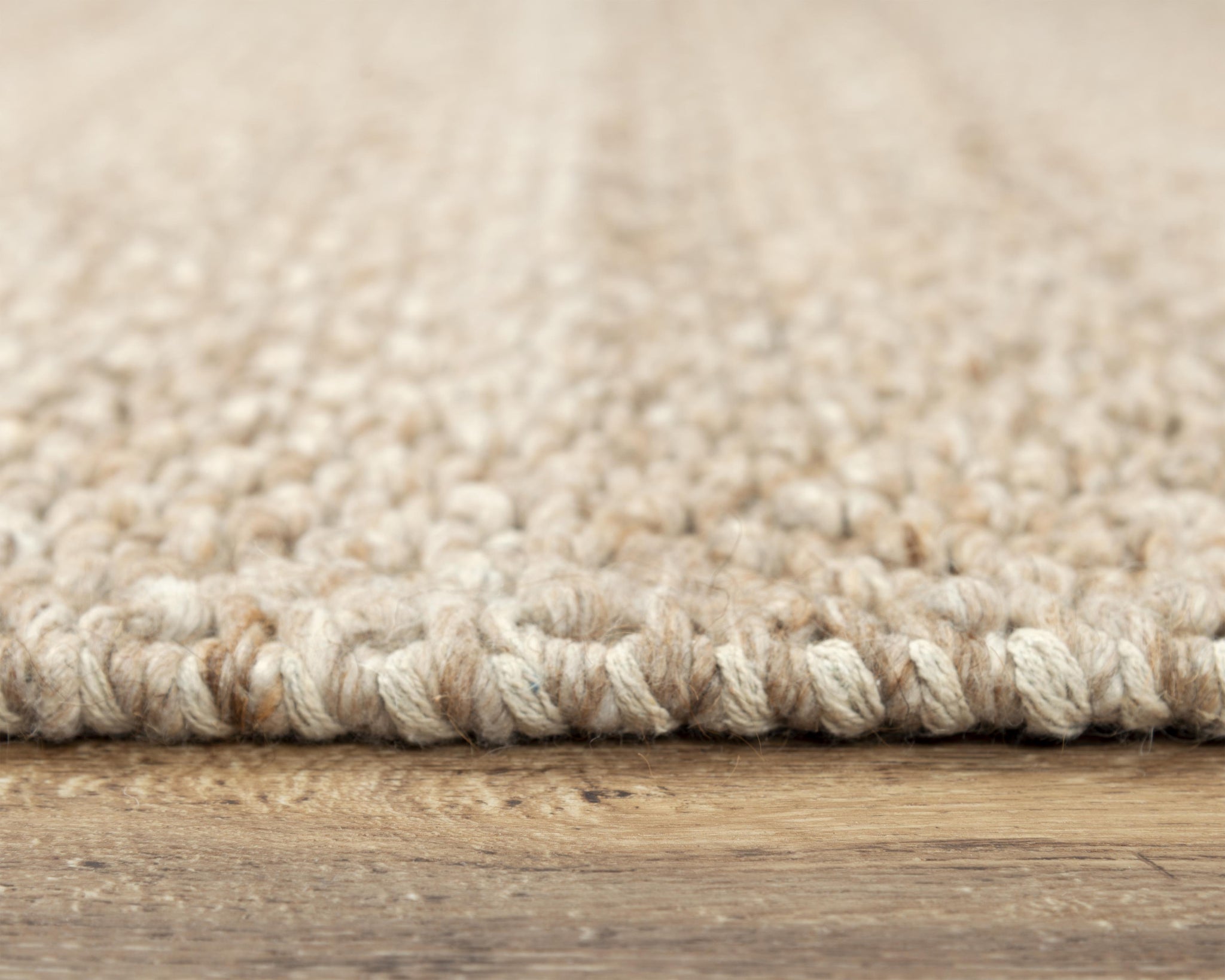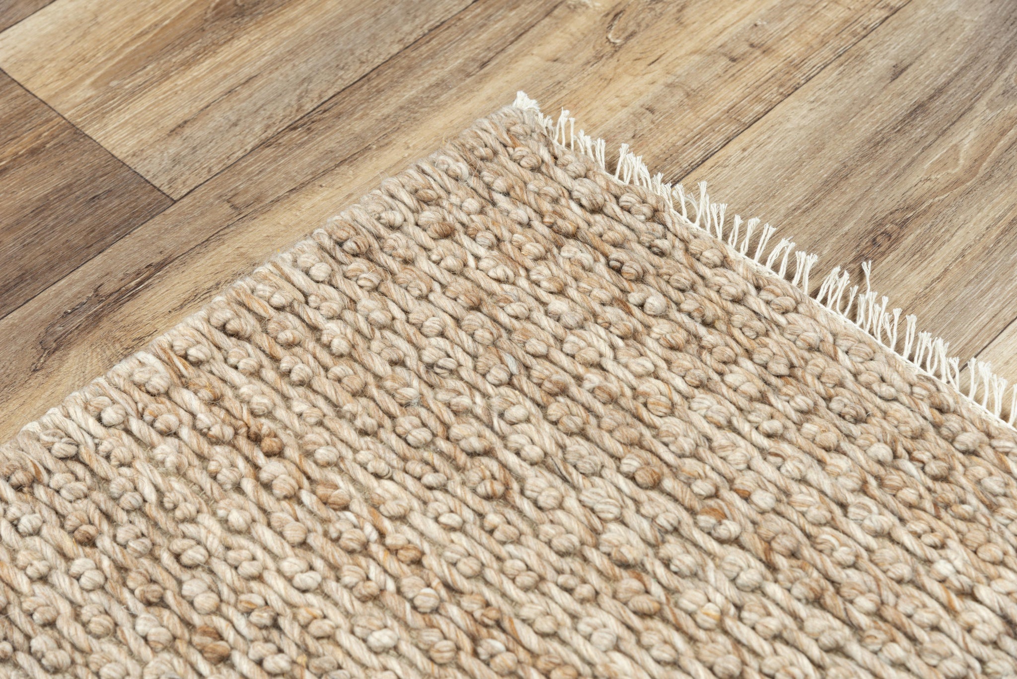 This Rizzy Home Capri Rug features a hand-woven, basket weave pattern with the twist of double knots throughout the neutral beige and tan fibers. A short fringe graces this rug giving it a clean, yet unbound feeling. Made of 60-percent recycled polyester and 40-percent natural wool; this rug will be durable in areas where there is heavier foot traffic providing an intriguing addition to your casual style of decorating in your home or office.