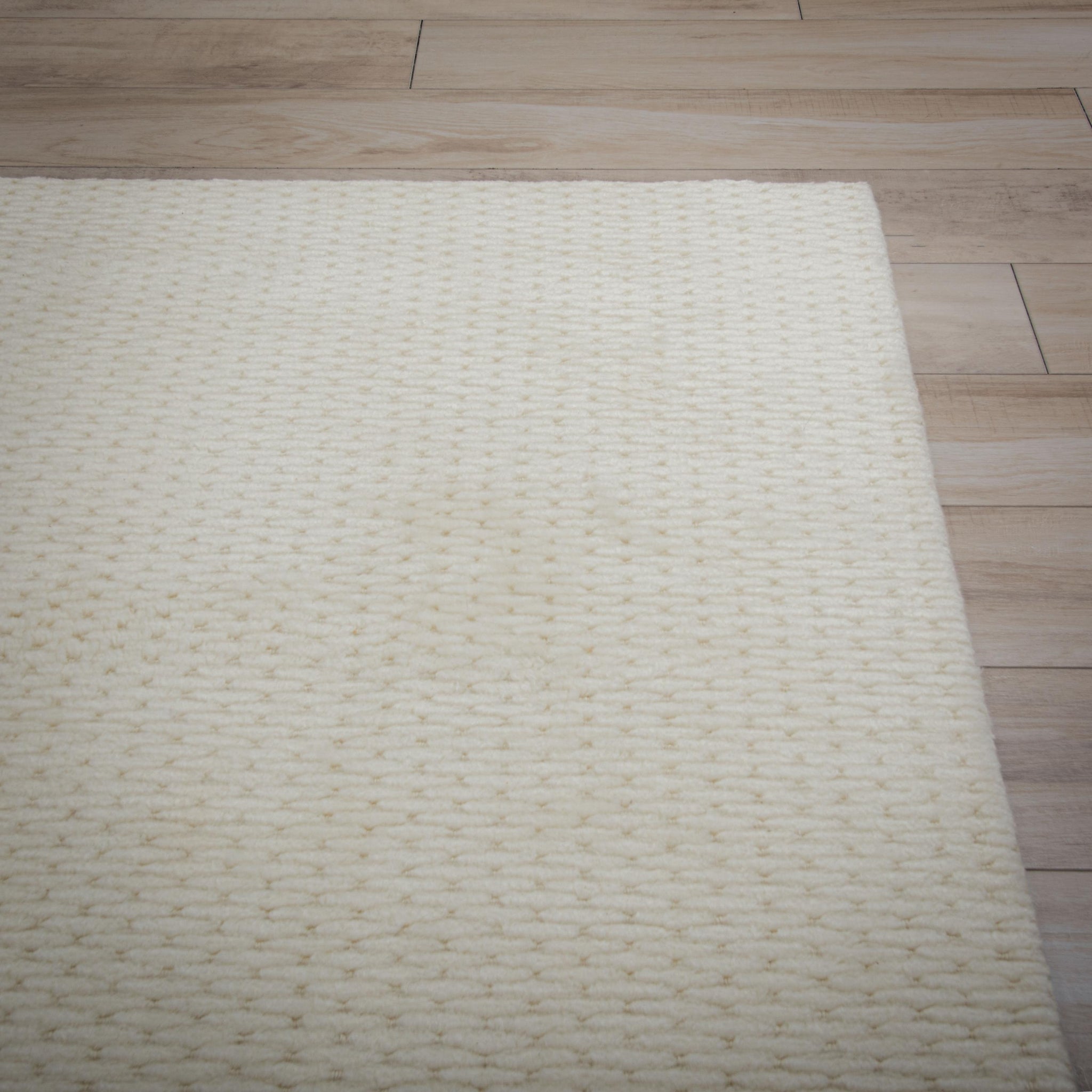 Enhance your home with the Haze Collection area rug by Rizzy Home, where modern design meets luxurious texture. Handloomed from 100% wool, this rug features a solid, classic basket weave pattern that adds unique texture and softness to any room. The soft ivory color, paired with a subtle tone-on-tone effect, offers a versatile, neutral base that effortlessly complements any décor. Crafted from soft, neutral-dyed wool, each rug in this collection is carefully handwoven to create a beautifully imperfect, organic look. With its luxurious feel and understated design, this rug offers the perfect balance of style, comfort, and durability for a modern home.