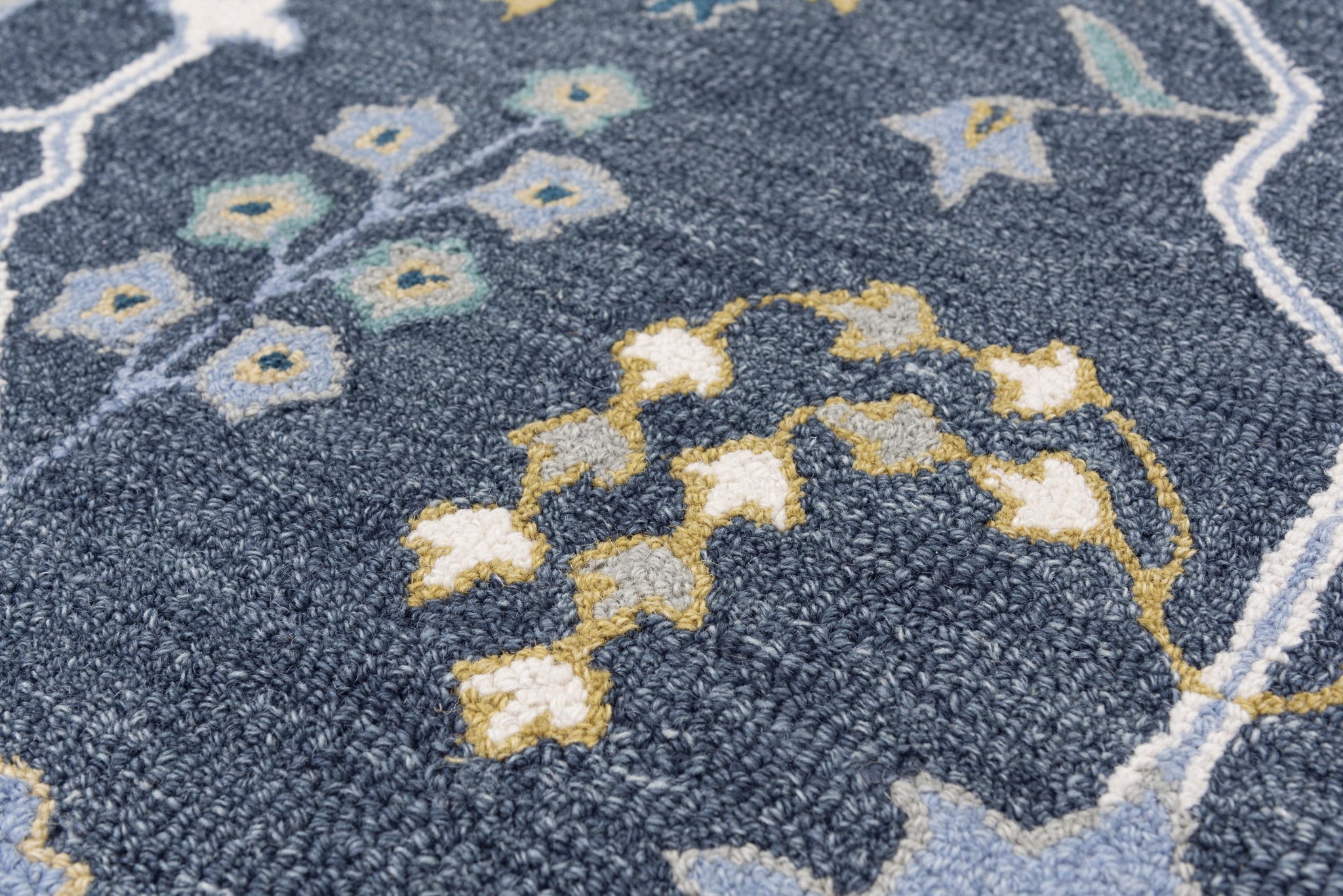 This hand-tufted area rug from Alora Décor's Conley Collection features a traditional Persian style and border design in a strikingly elegant navy blue and ivory color palette. 100% premium wool construction gives this rug a luxurious texture coupled with effortless durability. Timeless sophistication and elegance define this rug’s striking contrast and unique aesthetic that will easily complement any room with a unique style statement that’s all your own.