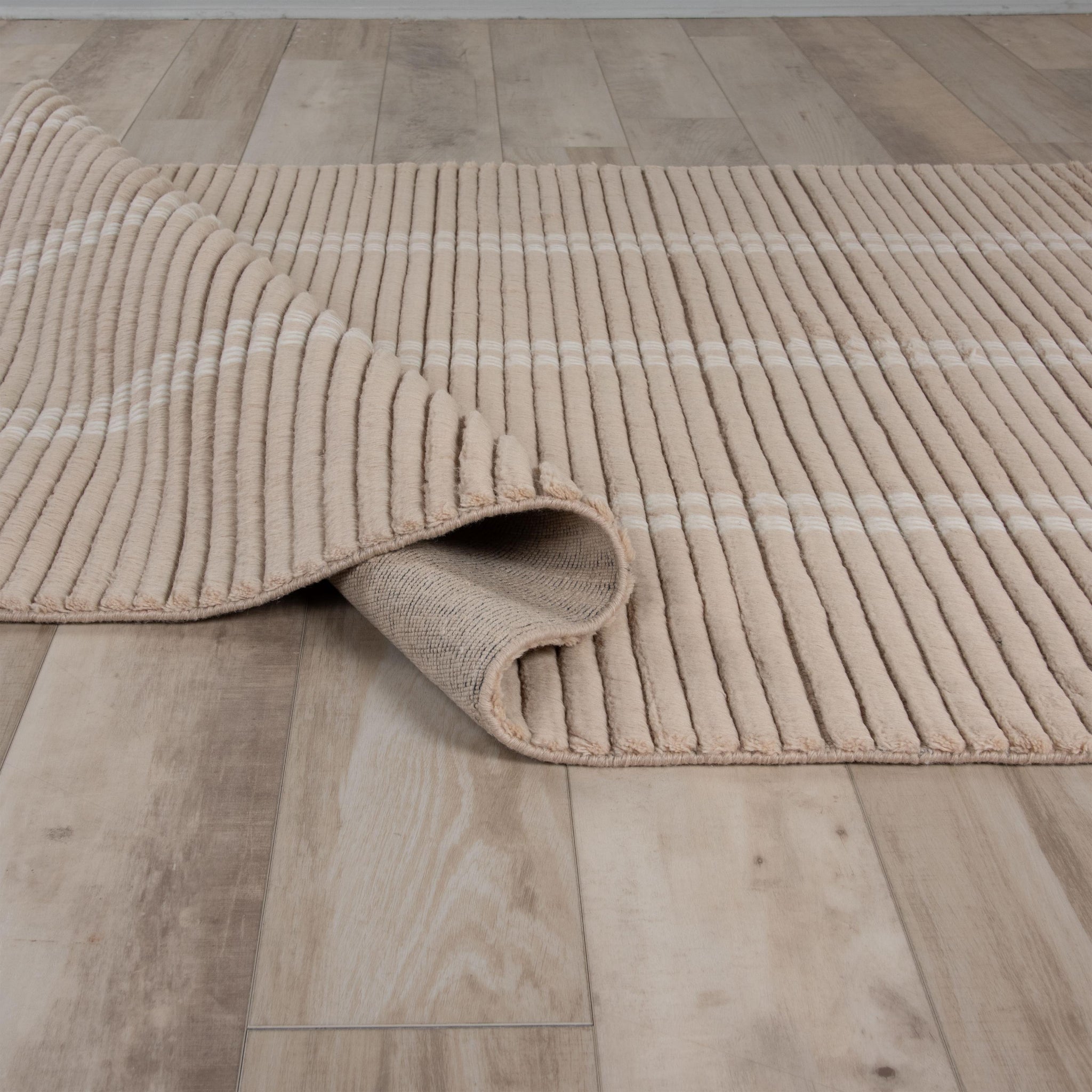 Step onto the hand-loomed luxury of the Dream Collection by Rizzy Home offered in a palette of muted and sophisticated tones. The subtle stripe pattern and linear texture draw from Scandinavian influences, blending seamlessly with modern design. Crafted from 100% New Zealand wool, this rug delivers softness to the touch, and the 0.7-inch pile adds cushion comfort. Kick off your shoes and stay a while with the Dream collection.