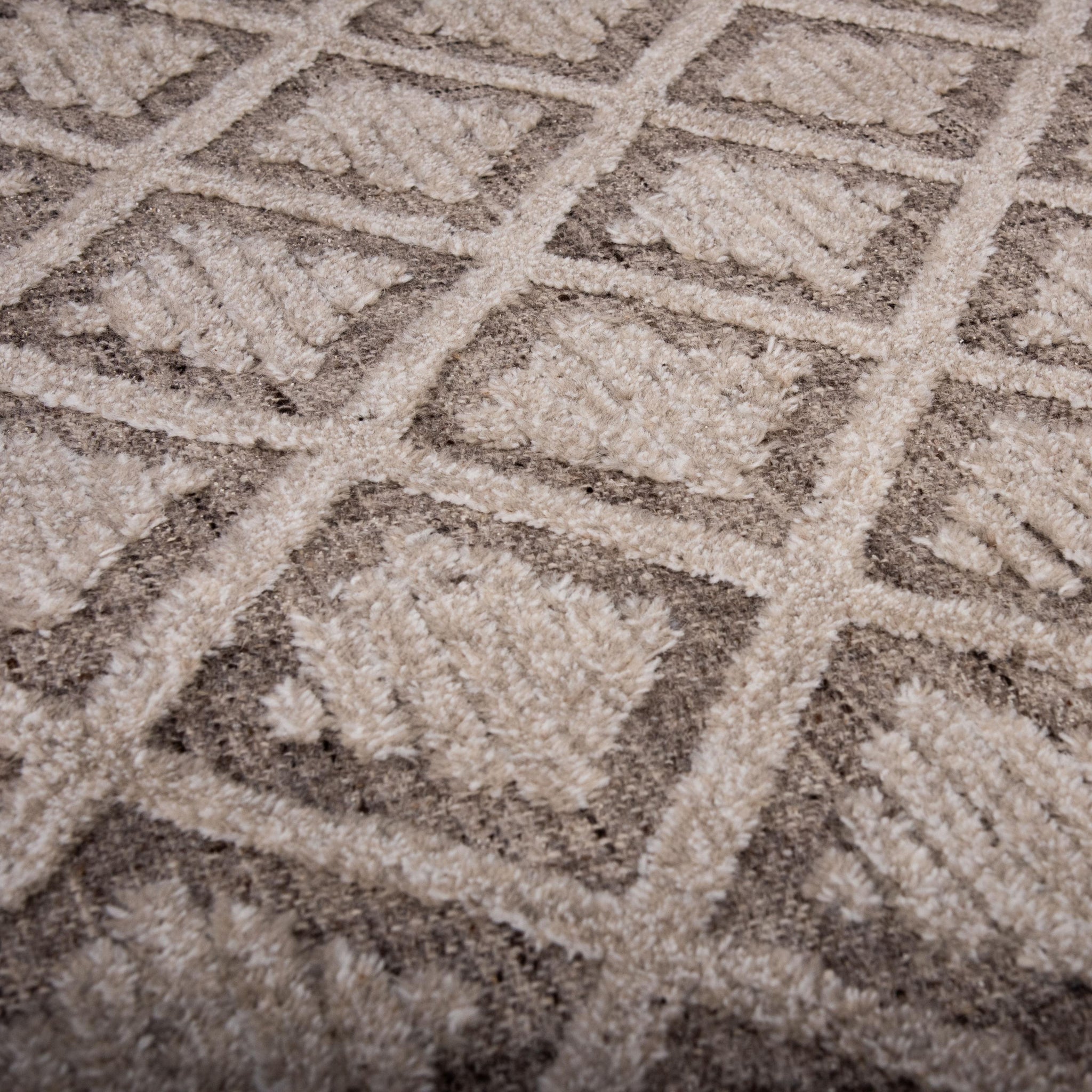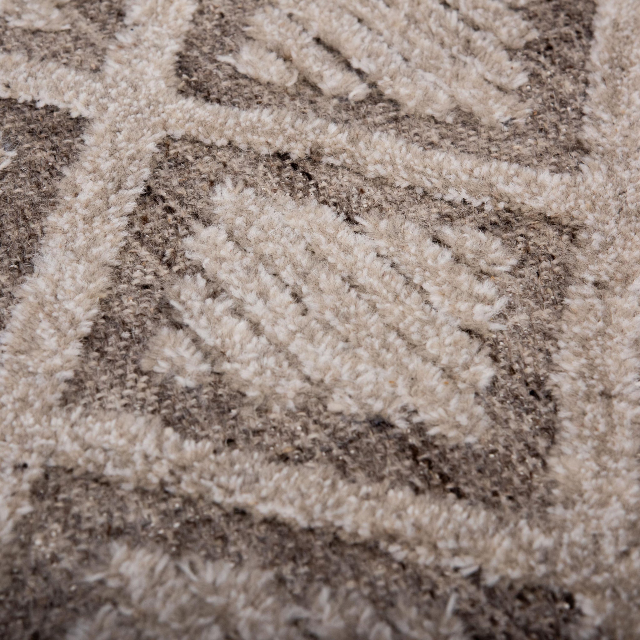 Style simplified. Introducing Rizzy Home's Driftwood Collection. This rug is hand-tufted with precision, featuring a blend of loop and high-low pile in 100% wool for unparalleled softness and durability. The neutral colorway geometric diamond patterning features shades of brown and beige coupled with depth and tactile flair. This rug boasts a cotton backing for stability and is hand surged for a polished finish. Each rug from the Driftwood Collection is uniquely designed and handcrafted in India, showcasing unparalleled craftsmanship and attention to detail.