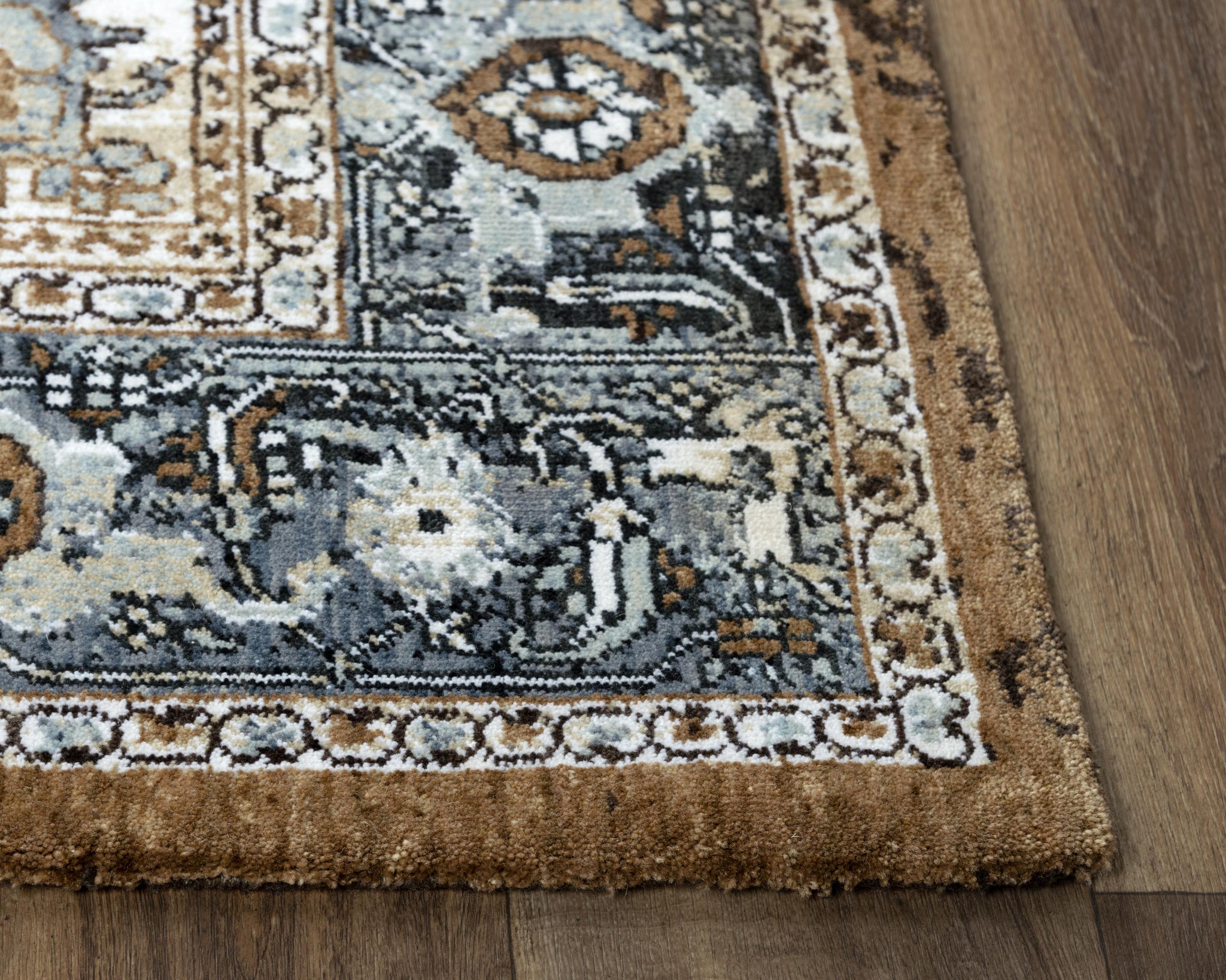 A grand medallion embraces the floral motif in the center of this Rizzy Home Elite Rug. Warm shades of brown and beige intermingle with the coolness of the neutral ivory and grey to inspire the mind to explore the traditional Persian flare of the design. Made from 100-percent recycled polyester, this rug will give lasting beauty to any room in your home, especially those high traffic areas where durability is a must.