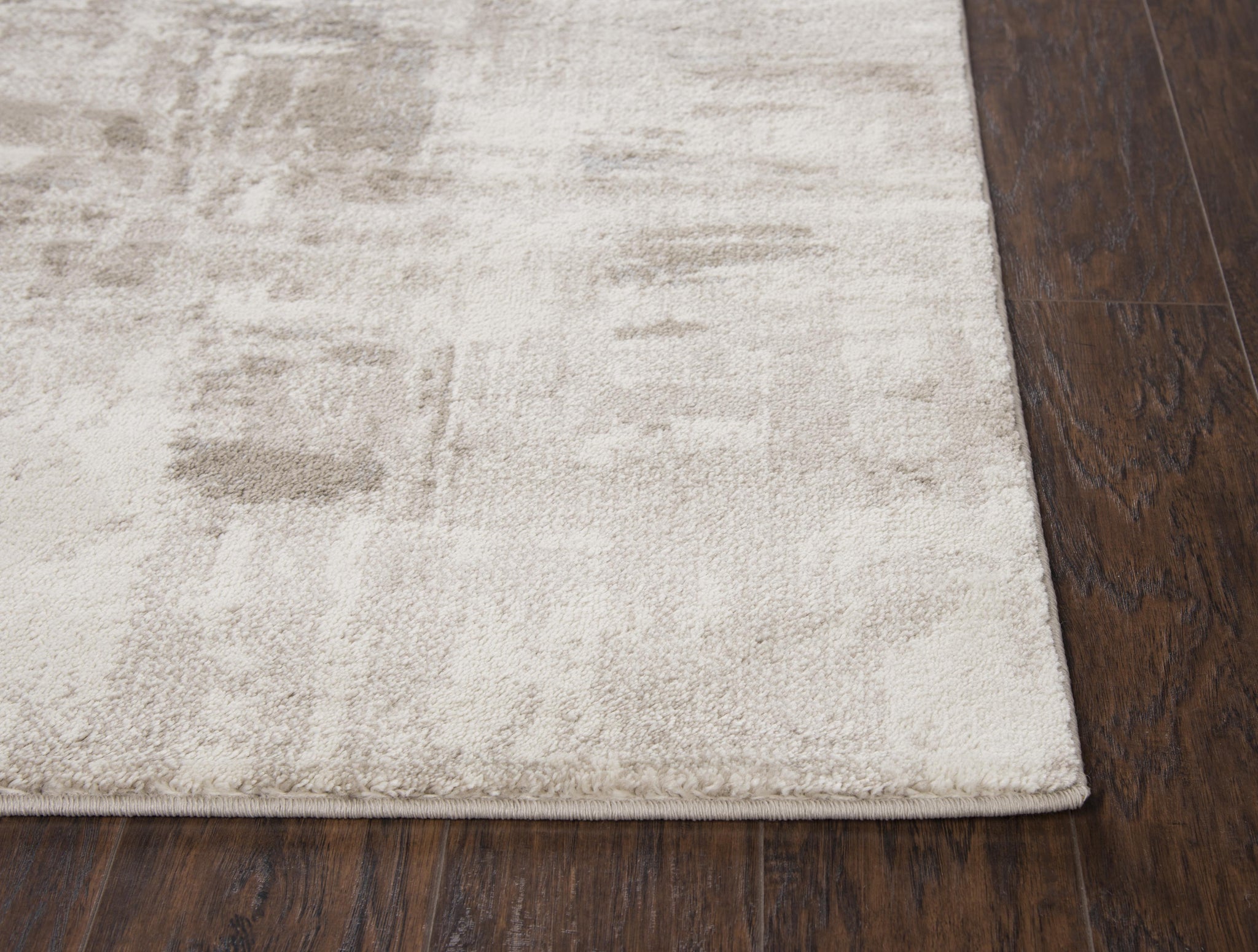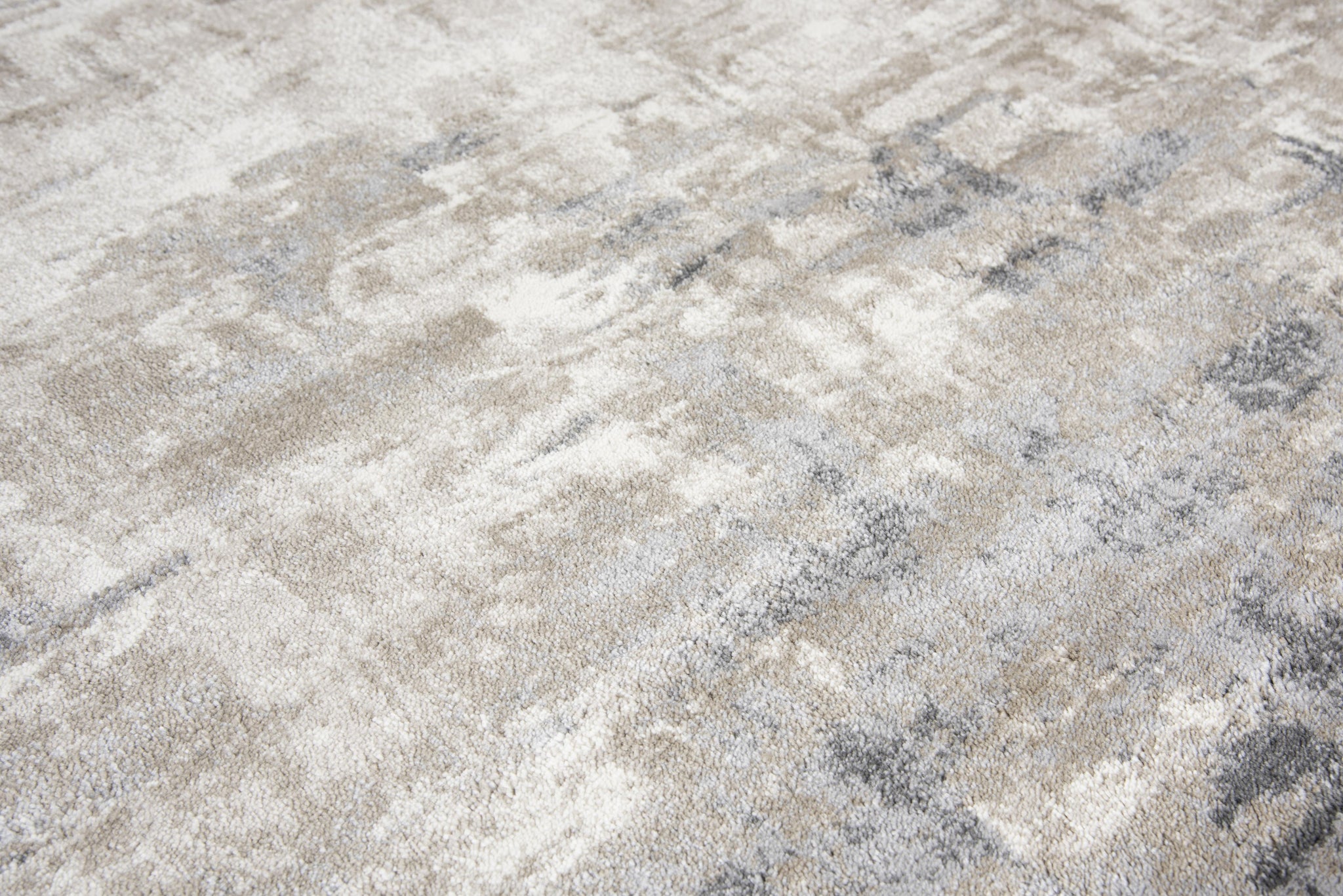This stylish area rug from Rizzy Home’s exclusive Encore Collection is power-loomed with a durable polypropylene construction, featuring a jute backing and cut pile. The slate gray, beige, and ivory colors mesh in an abstract design, creating a contemporary piece of art that will make a statement in any upscale room décor. The distressed accent adds a touch of vintage charm. This rug is easy to clean and maintain, while also adding a touch of ultramodern elegance.