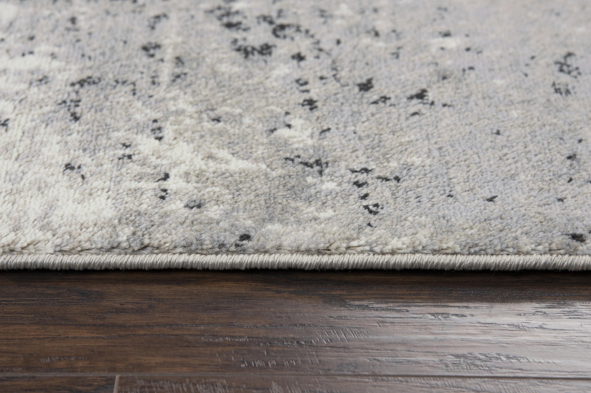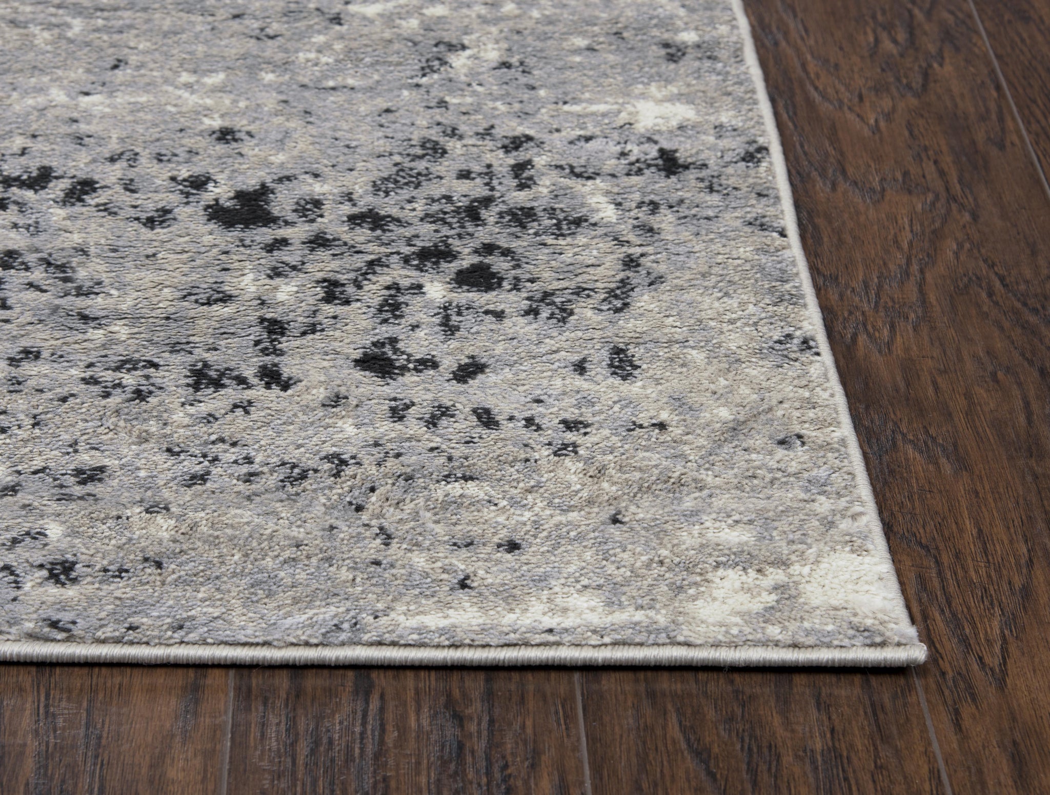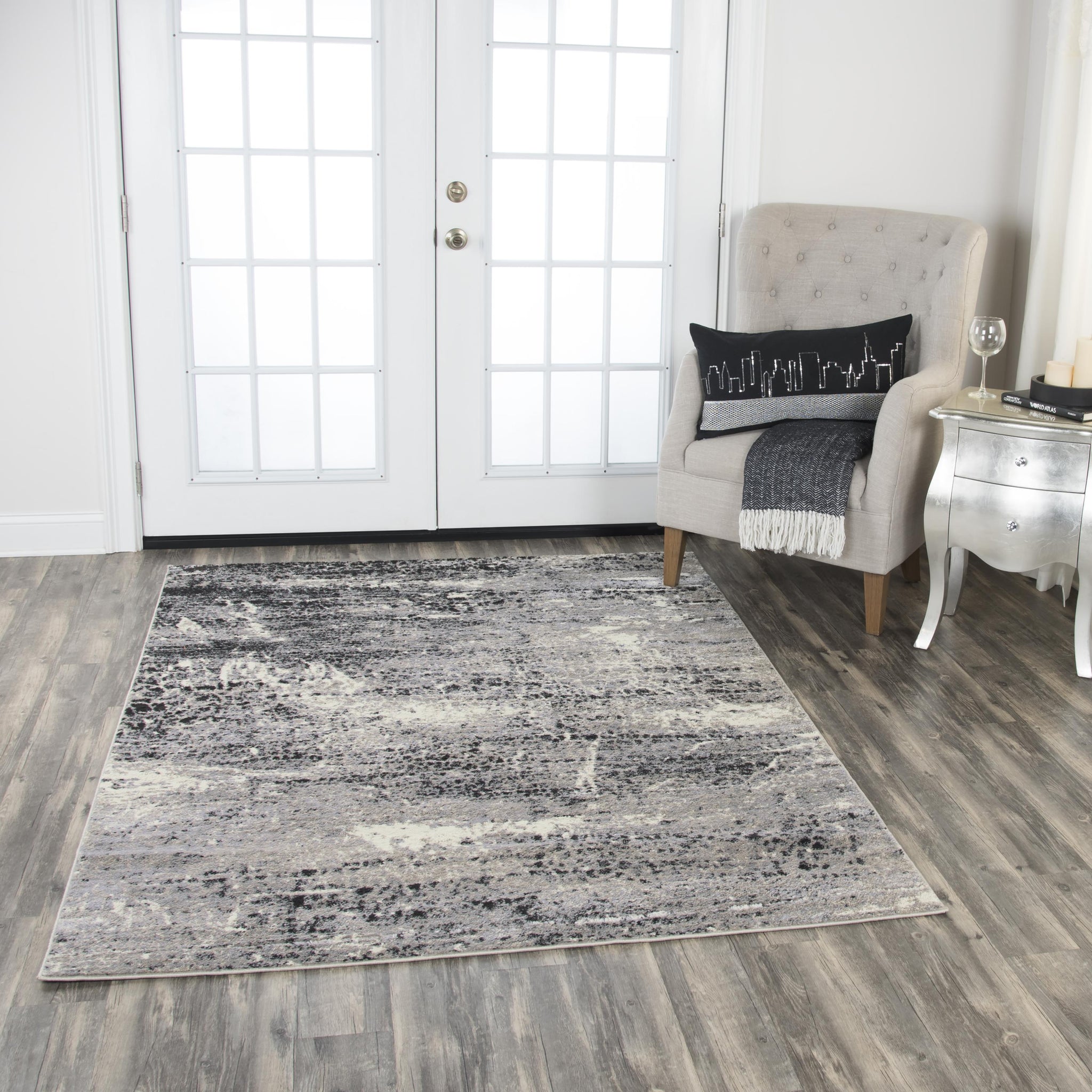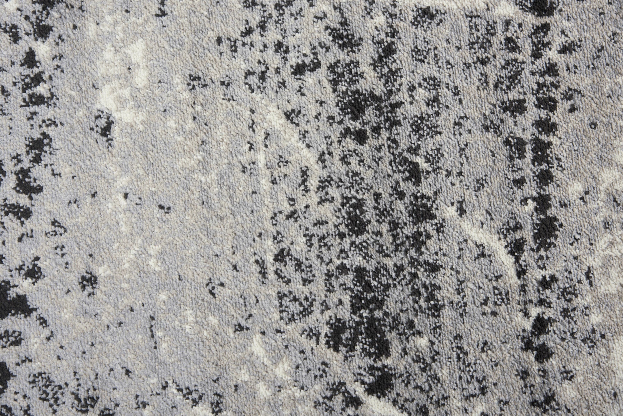 This ultramodern abstract area rug from Rizzy Home’s exclusive Encore Collection features a bold slate,navy, black and ivory color palette, in an industrial, distressed design. Its durable polypropylene construction make it easy to clean and perfect for high-traffic areas, while maintaining an artistic modern décor style element.