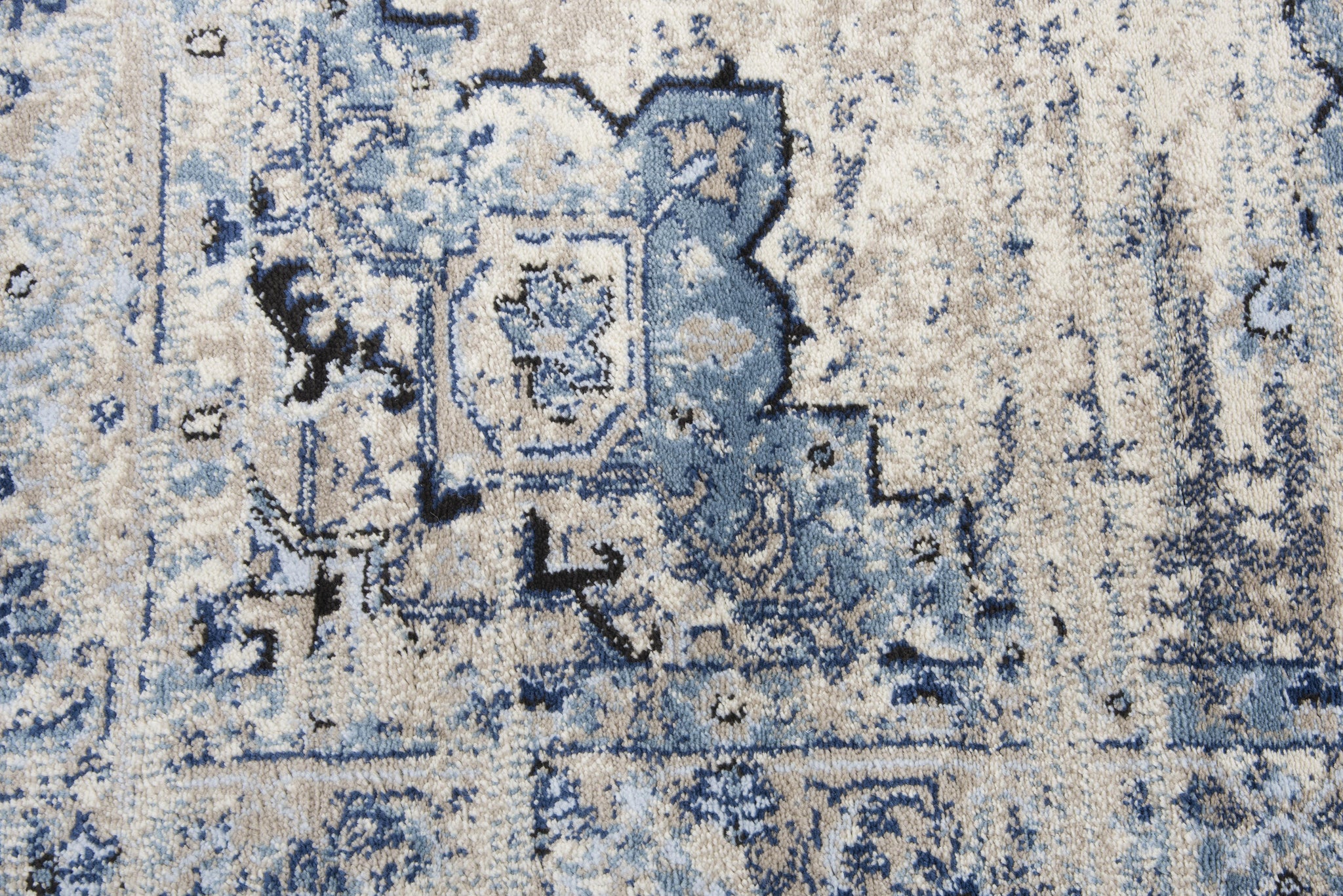 This beautiful area rug from Rizzy Home’s Encore Collection features a navy blue, jet black and ivory, color palette in a traditional Persian Mina-Khani design with traditional medallion artistry and distressed vintage charm. Crafted of polypropylene, this rug not only adds a touch of elegance and sophistication to any room, but can also withstand heavy traffic while being stain-resistant. This rug’s unique aesthetic will create a unique style statement to complement any décor with classic timeless design.