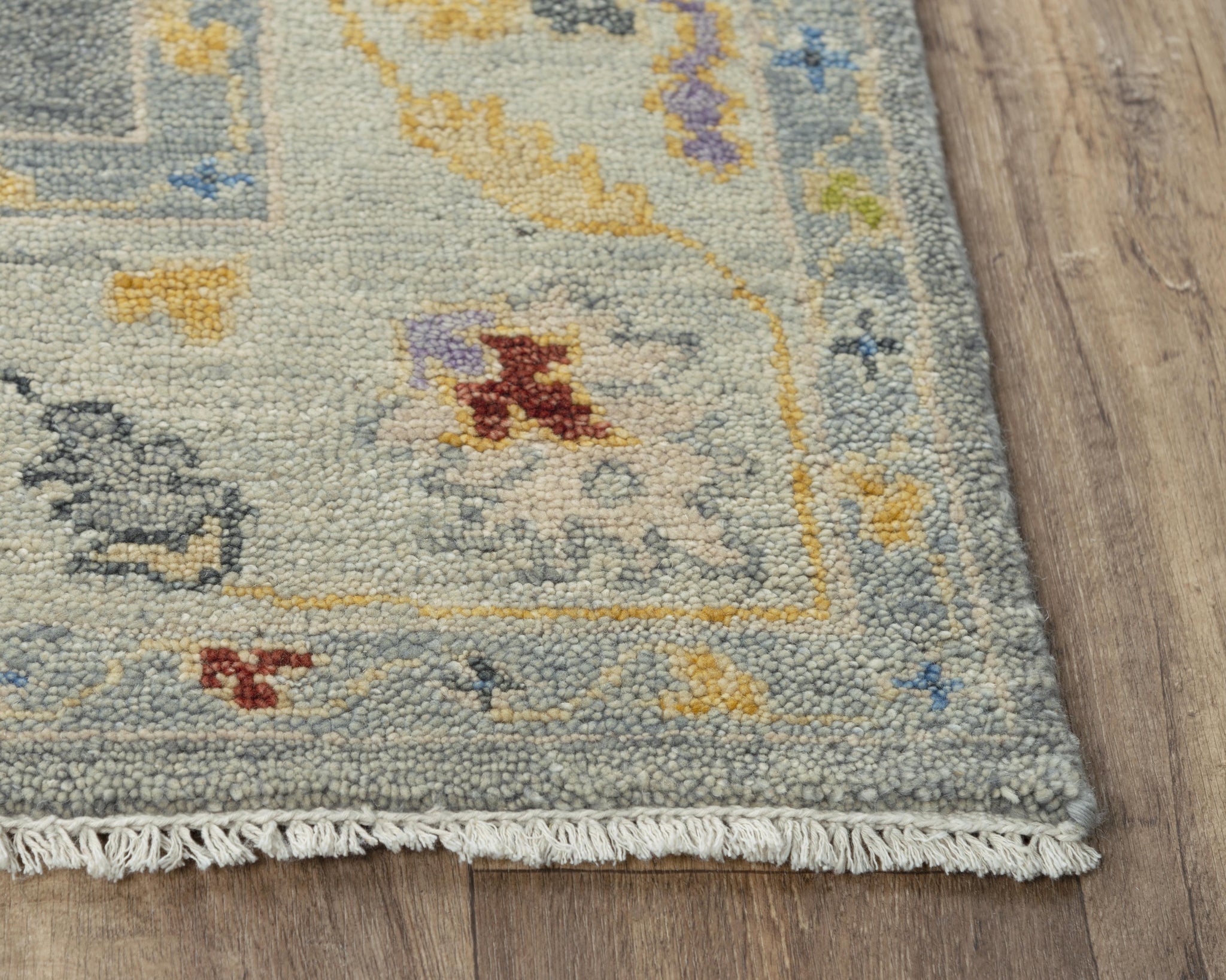 Demure neutral ivory and grey are the backdrop for a field of flowers in varied hues of blue, burgundy, yellow, peach, and green that will enhance and beautify your traditional or transitional style home décor. This Rizzy Home Envision Floral Rug is hand-crafted from start to finish using 100-percent hand-spun wool and hand-knotted and hand-surged for quality and artistry.