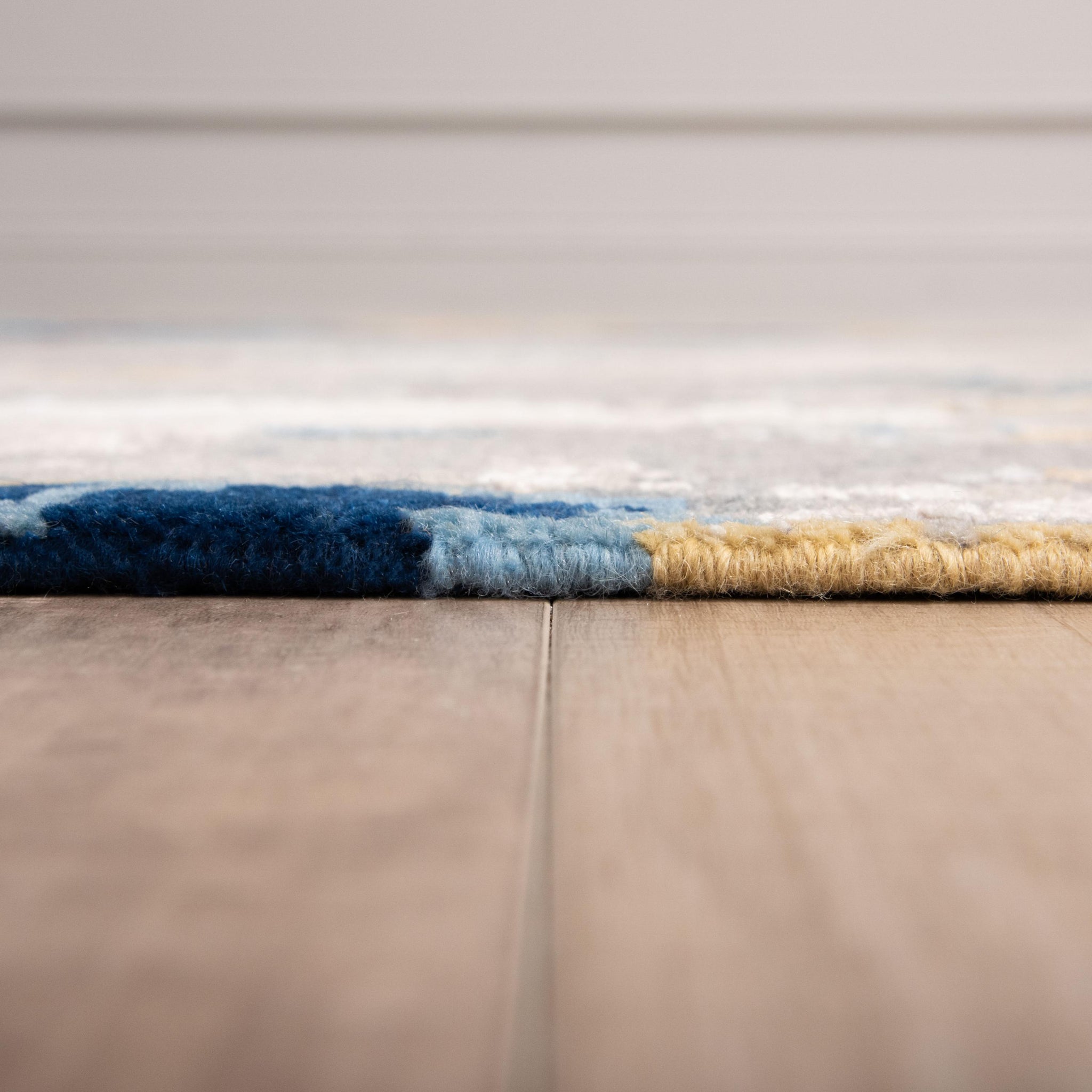 Artisanal craftsmanship meets contemporary elegance in this stunning rug from Rizzy Home's prestigious Evolution Collection. Crafted with meticulous care and attention to every detail, this rug is more than just a floor covering; it's an elevated piece of art to anchor any refined space with unrivaled beauty and sophistication. Hand-knotted, this rug features a luxurious cut pile crafted from a blend of Durapoly and wool, ensuring both durability and indulgent softness underfoot. Adorned in a rich colorful palette of rust, brown, silver, beige, and ivory, this rug boasts beautiful updated fashion colors that breathe life into any room. Its abstract design adds a touch of modernity and flair, making it the perfect anchoring centerpiece for any refined décor or chic ultramodern interior.