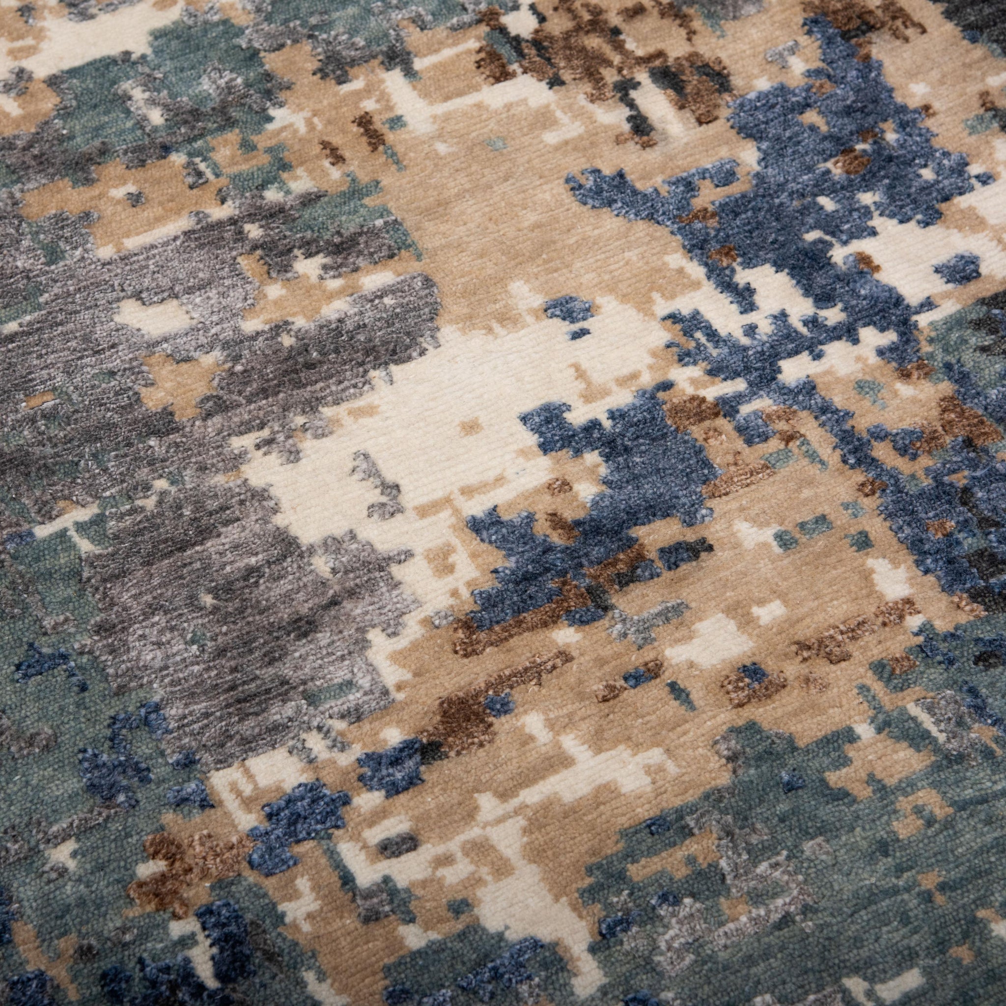 Starting with warp strings stretched on a loom, skilled artisans Hand tie each individual knot to create a true piece of art. Pieces from the Evolution collection all feature beautifully blended fashion colors accented with shimmering Tencel.