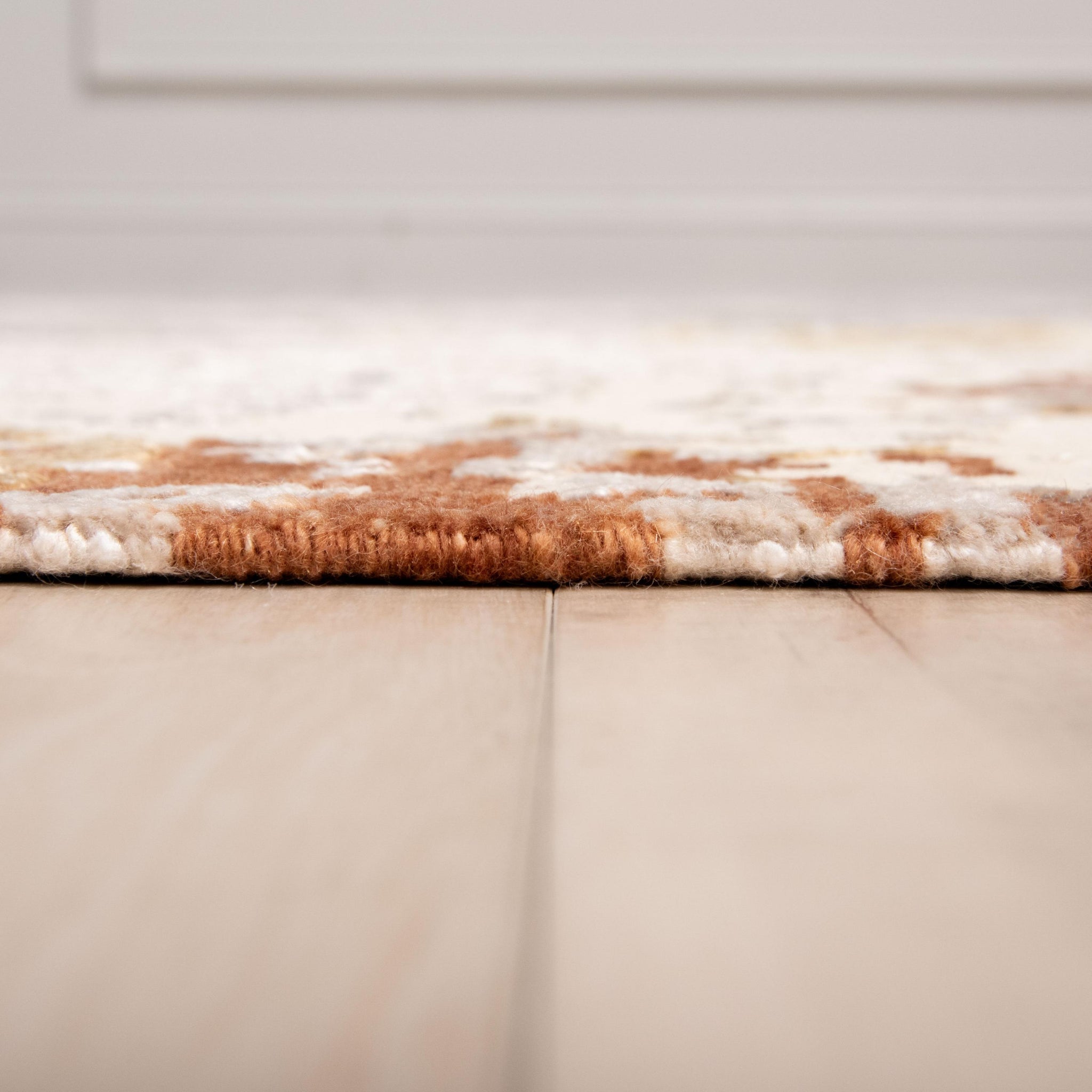Artisanal craftsmanship meets contemporary elegance in this stunning rug from Rizzy Home's prestigious Evolution Collection. Crafted with meticulous care and attention to every detail, this rug is more than just a floor covering; it's an elevated piece of art to anchor any refined space with unrivaled beauty and sophistication. Hand-knotted, this rug features a luxurious cut pile crafted from a blend of Durapoly and wool, ensuring both durability and indulgent softness underfoot. Adorned in a rich colorful palette of rust, brown, silver, beige, and ivory, this rug boasts beautiful updated fashion colors that breathe life into any room. Its abstract design adds a touch of modernity and flair, making it the perfect anchoring centerpiece for any refined décor or chic ultramodern interior.