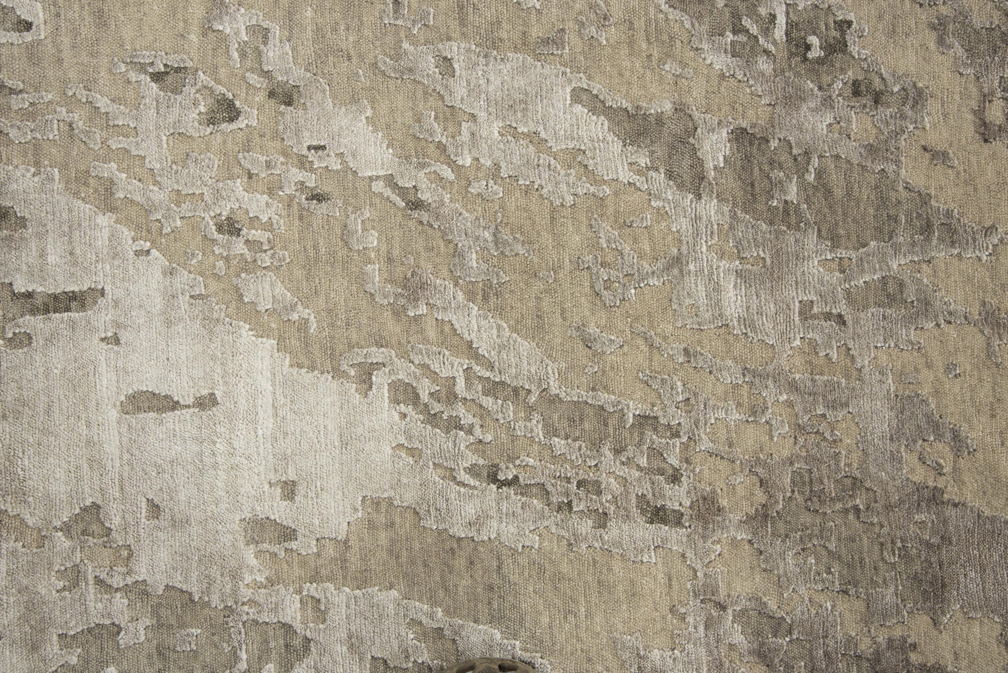 Neutral stripes of beige and ivory soften the modern, industrial style of this abstract rug. The Rizzy Home Finesse Beige Abstract Rug is made by expert craftsmen who hand-knot the fine 80-percent hand-spun New Zealand wool blended with 20-percent shimmering Tencel. Each rug is then washed, carved, and surged by hand for a magnificent quality that will last.