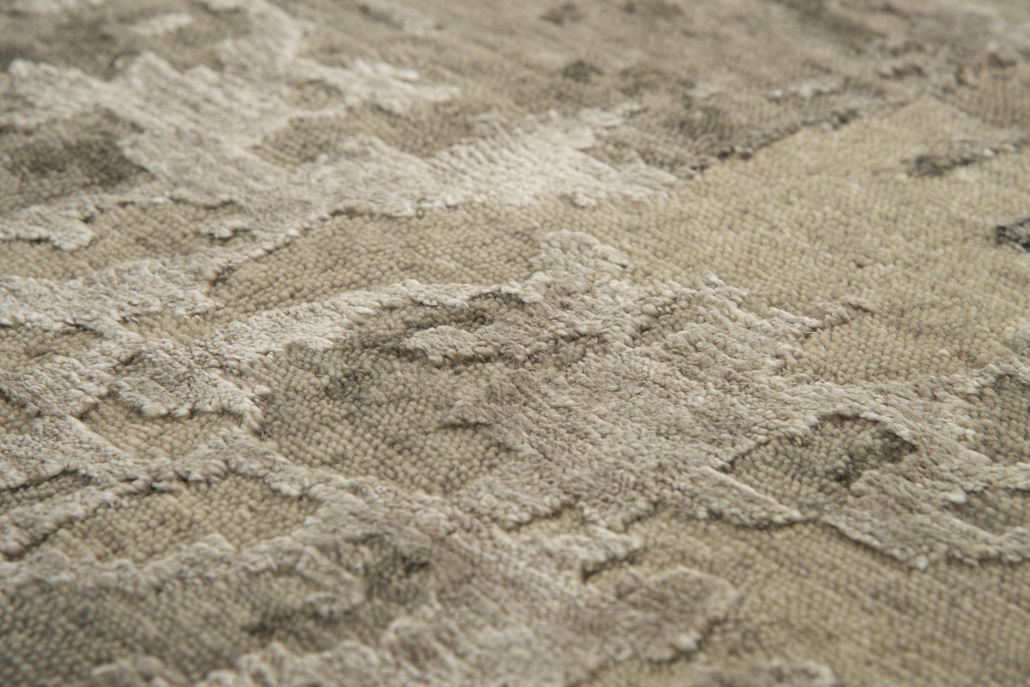 This collection is created by tying each knot by hand exactly as fine authentic made carpets have been made for centuries. Constructed primarily of fine, soft New Zealand Wool and accented with shimmering Tencel for contrasting highlights. To enhance the overall design, each piece is meticulously carved by a skilled artisan adding texture and drama then hand surged and hand washed to produce a rich luster.