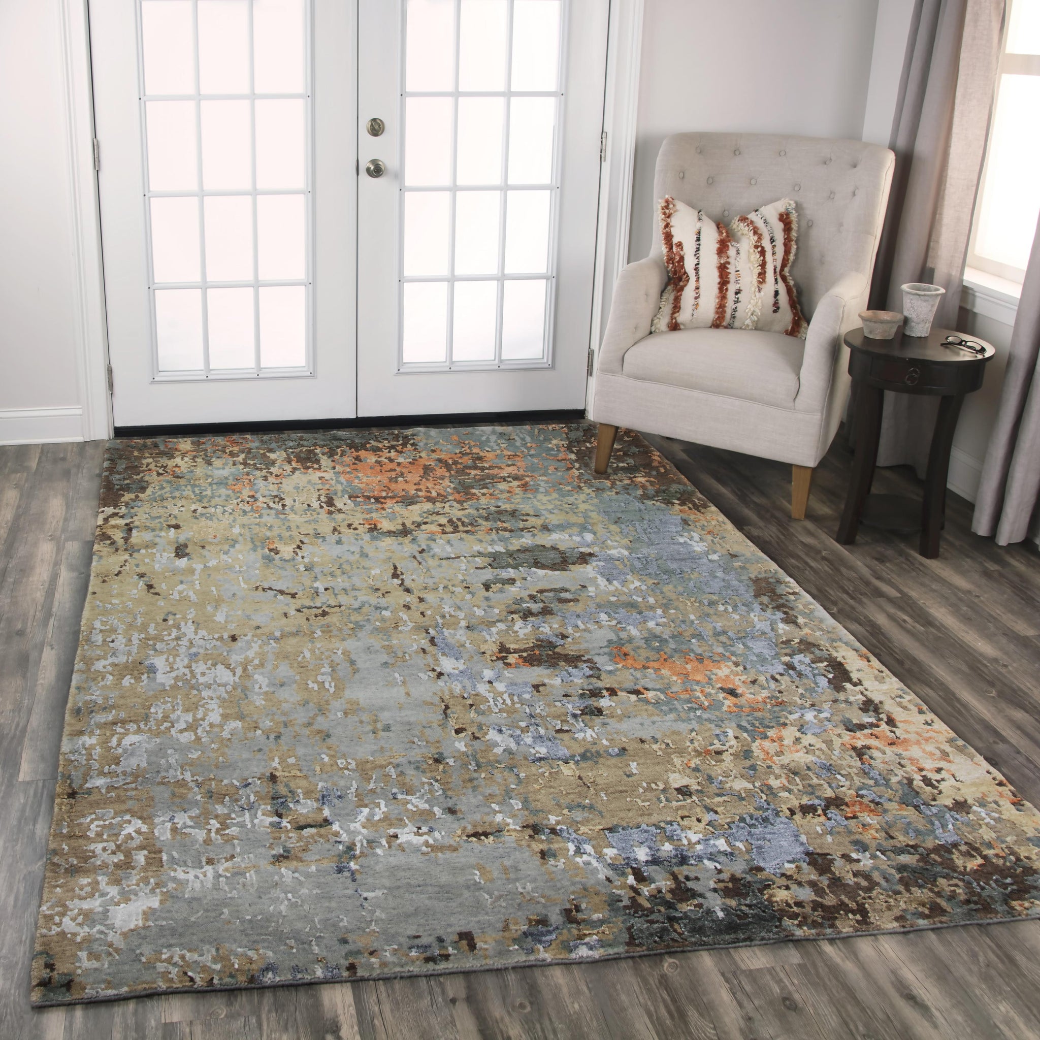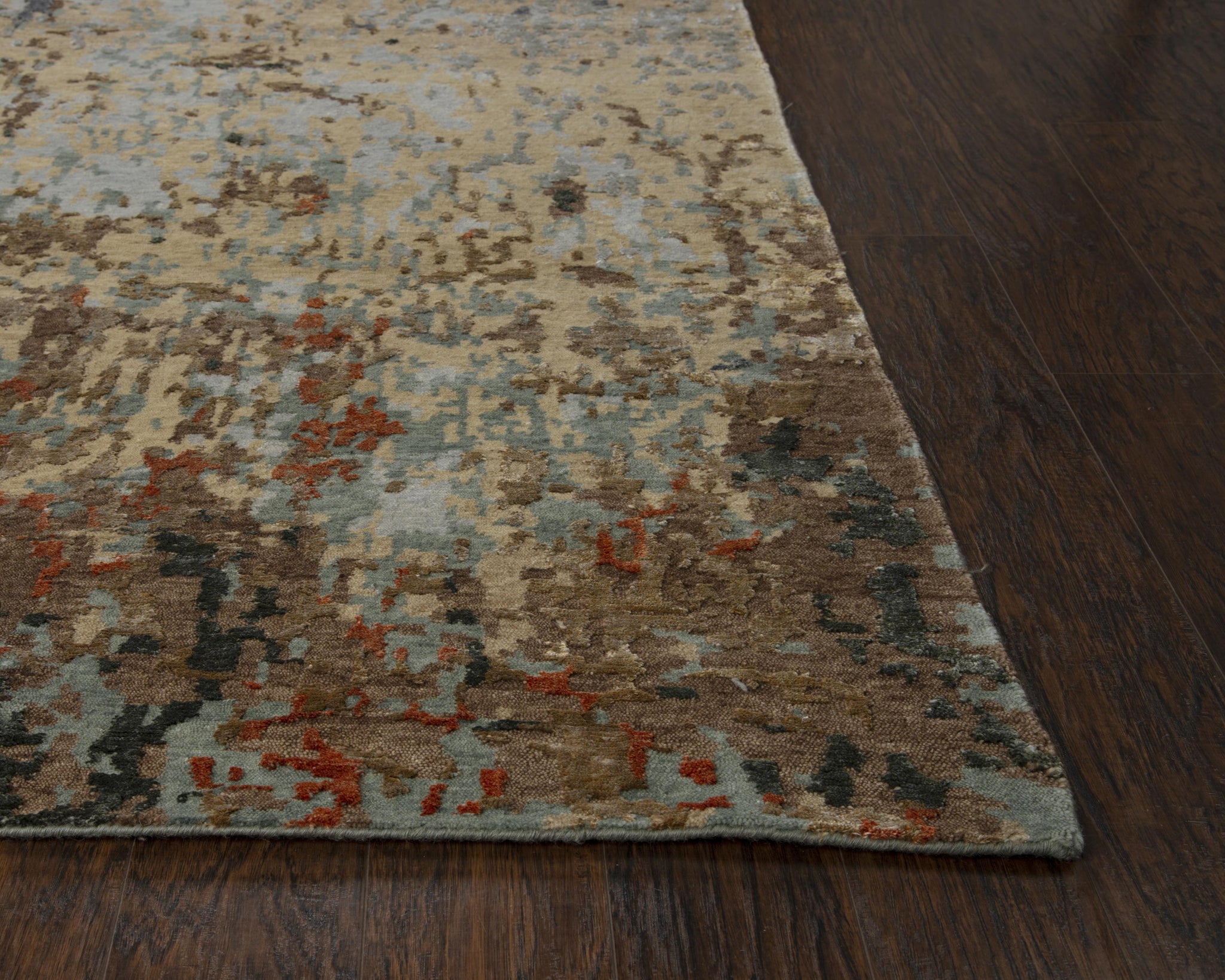 Light grey, beige, taupe, rust brown, dark grey, with hints of blue and black give beauty and variety to this wonderful rug. The Rizzy Home Finesse Multi-colored Hand-knotted Abstract Rug is crafted of fine yarn comprised of 80-percent New Zealand wool and 20-percent shimmering Tencel. Using techniques honed over centuries of fine carpet production, each rug is hand-knotted and then washed, carved, and surged by hand, giving it character and softening the modern, industrial style.