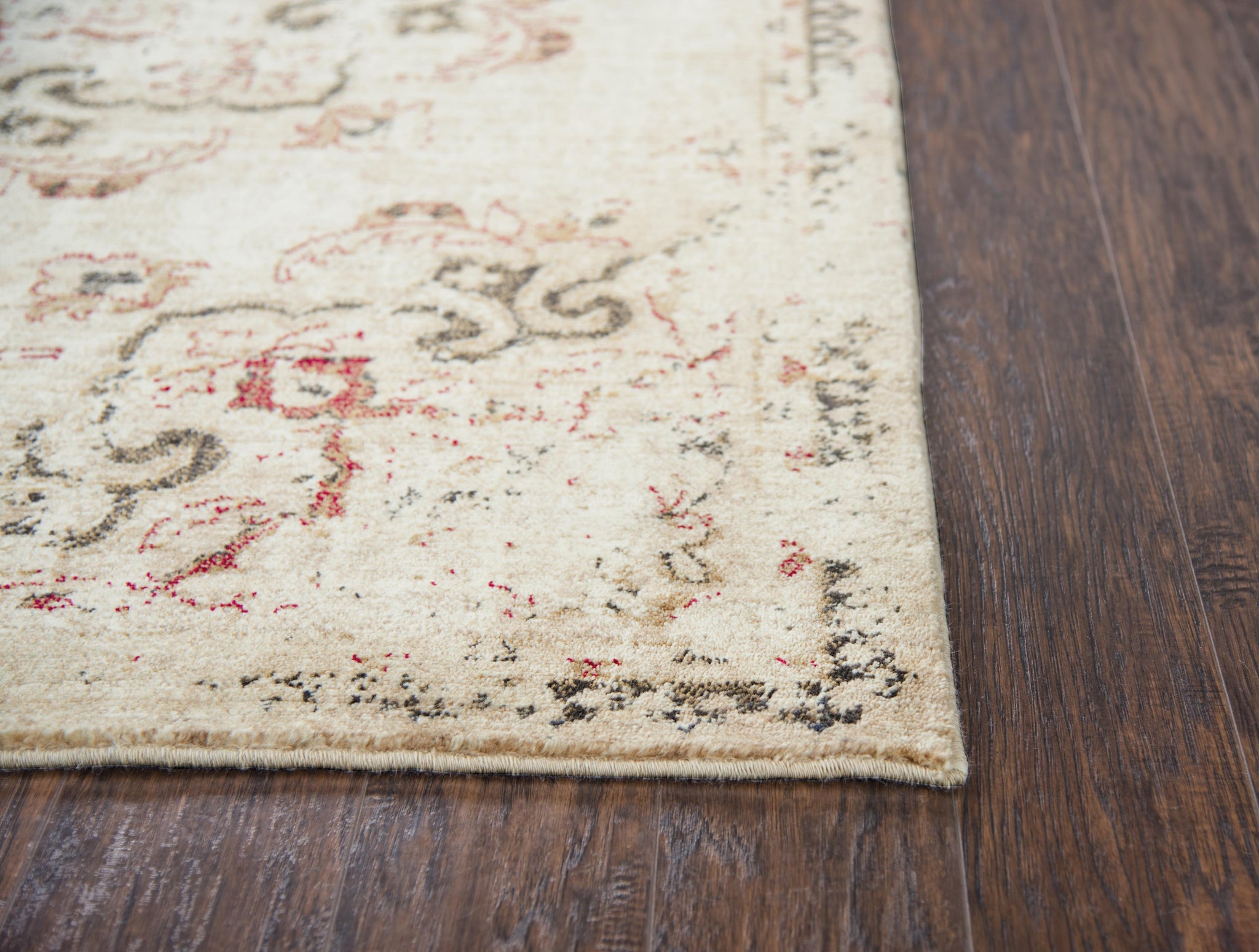 Add a touch of soft, neutral vintage style with the Rizzy Home Gossamer Neutral Beige, Brown, and Rust Medallion Rug. Beige and tan make up the backdrop with rust and brown for dramatic pops sprinkled over this beautiful rug. Power loomed with a long-sought method giving the piece a hand-knotted look and feel, the rug is then hand-washed and hand-finished for softness and the luxurious feel of much more expensive carpets. The medallion design is created in 100-percent washed New Zealand wool, perfect for transitional areas of your home.