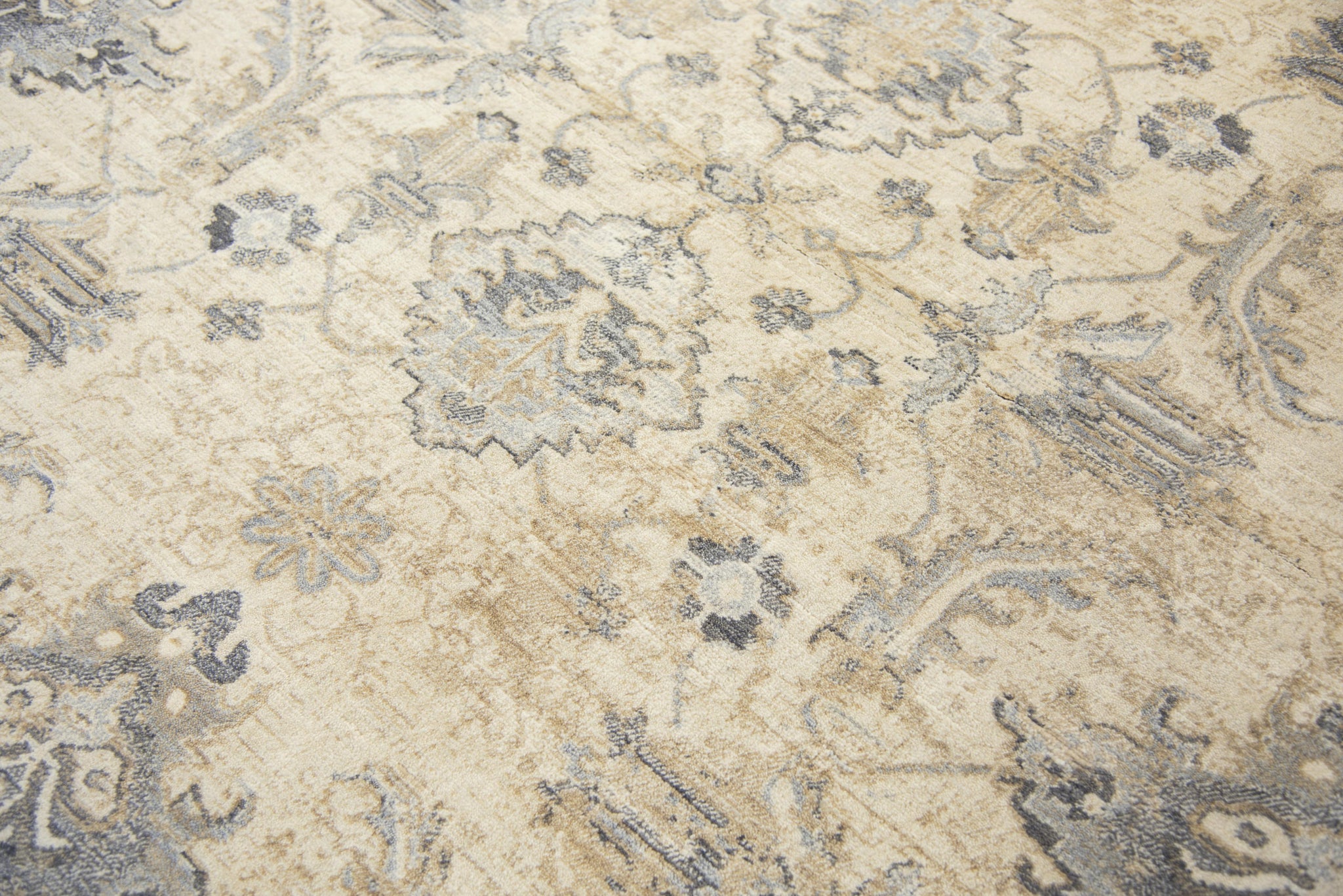 Cool grey tones combine with a touch of warm beige creating a charming vintage look of days-gone-by on this Rizzy Home Gossamer Classic Medallion Rug -- perfect for your transitional style home or office décor. This piece is constructed using soft 100-percent hand-washed wool that is trimmed to a short, easy-to-clean, consistent nap, then hand-finished in wool that matches the small, solid border.