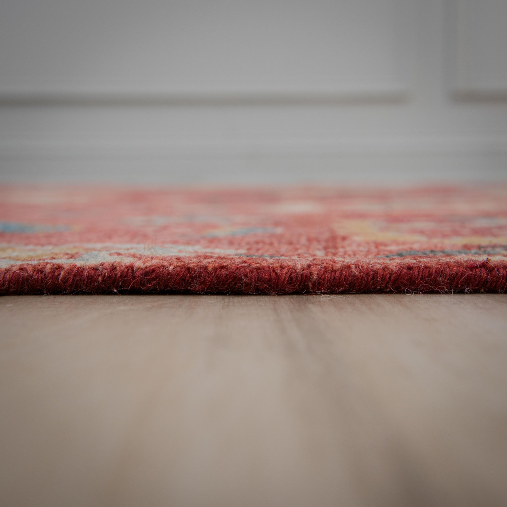 Step into timeless elegance with the LushCollection rug by Rizzy Home—a masterpiece of artistry and craftsmanship. Hand-knotted in India by skilled artisans, this area rug tells a story woven through centuries of tradition. Its rich red foundation is adorned with a refined floral medallion pattern, highlighted by accents of blues, grays, and subtle yellows. Made from 100% pure wool, this updated classic combines old-world techniques with a fresh, modern palette. Hand-finished and meticulously surged, every knot speaks of dedication and detail, making this rug not just a home accessory but a traditional piece that effortlessly blends sophistication and warmth.
