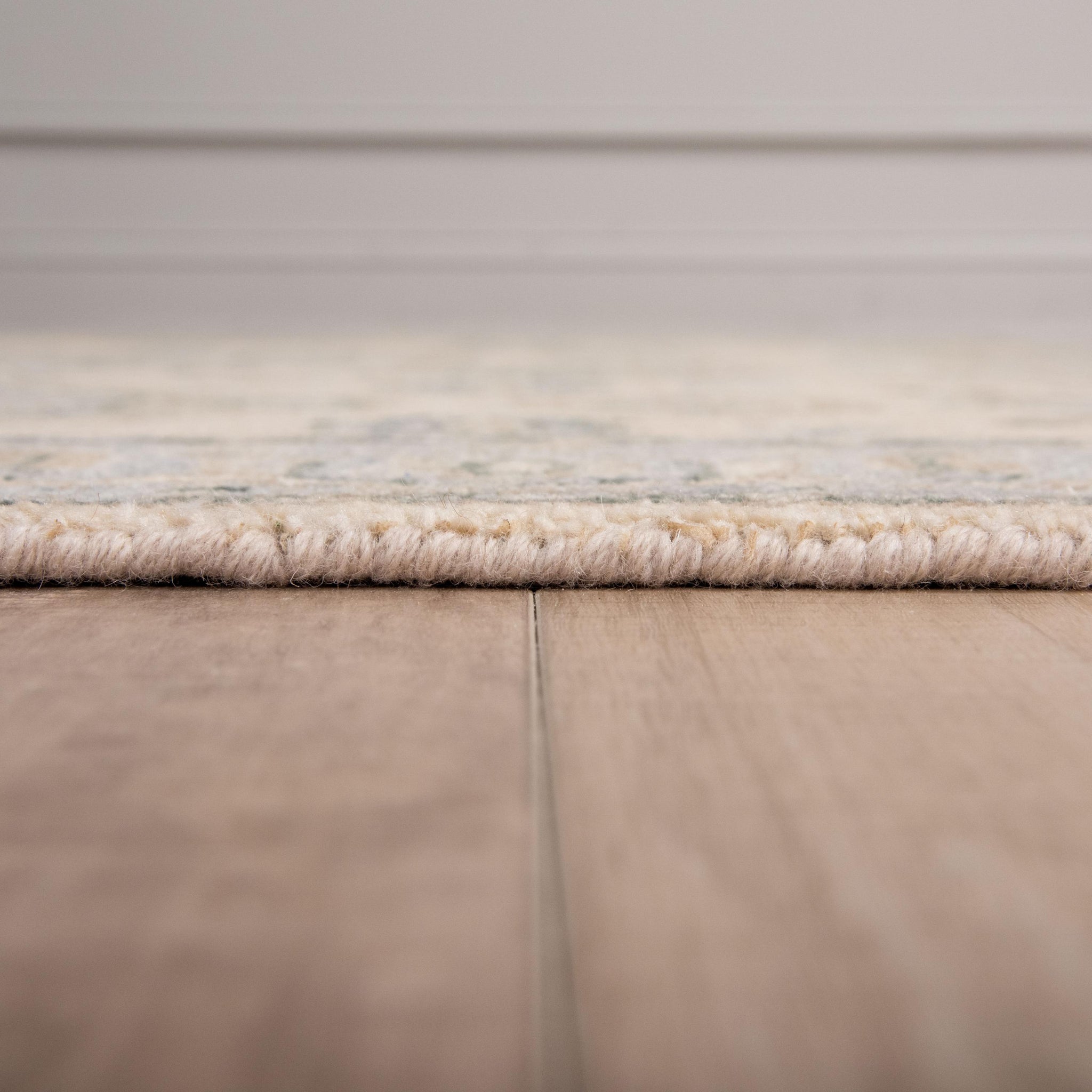 Introducing the epitome of timeless luxury: Rizzy Home proudly presents this distinguished rug from the renowned Hallmark Collection. Hand-knotted with meticulous precision and featuring a luxurious cut pile, this rug embodies the perfect fusion of traditional charm and contemporary sophistication. Crafted entirely from 100% wool and devoid of backing, this rug seamlessly integrates into any space, inviting you to indulge in its sumptuous texture and unparalleled comfort. Adorned in a harmonious palette of beige, grey, brown and ivory hues, it exudes understated elegance and timeless allure. Enriched with captivating medallions and bordered motifs, this rug boasts an updated classic design that pays homage to centuries-old construction techniques. Each rug undergoes meticulous hand-finishing and hand surging in India, showcasing the dedication and expertise of skilled artisans. Elevate your home décor with the timeless sophistication of this Hallmark Collection rug from Rizzy Home. Whether as a focal point or a complementary piece, its refined design and superior craftsmanship promise to transform your space into a sanctuary of unmatched beauty and charm. Immerse yourself in the luxury of this extraordinary rug, where every detail speaks of enduring elegance and heightened refinement.