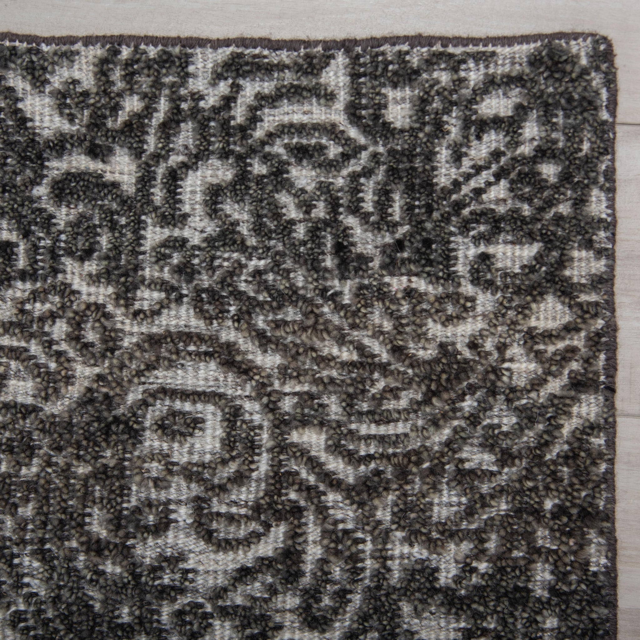 Discover the epitome of elegance and sophistication with the Rizzy Home Coquette Collection rug. Meticulously hand-knotted from 100% wool, this rug features a luxurious cut pile that ensures softness underfoot and durability. With no backing, it proudly showcases its authentic handmade construction. In a timeless colorway of black, ivory, and slate, and adorned with a captivating paisley mosaic design, this rug seamlessly marries traditional and transitional styles in an artisanal presentation. No matter the size it an ideal centerpiece, effortlessly elevating any space with its updated classic design. Crafted in India using centuries-old techniques. Each piece is hand-finished and hand surged for impeccable detail, exuding charm and sophistication with every thread. Embrace the allure of classic style with the Rizzy Home Coquette Collection rug—a stunning addition that brings a touch of timeless elegance and refined charm to your home décor.