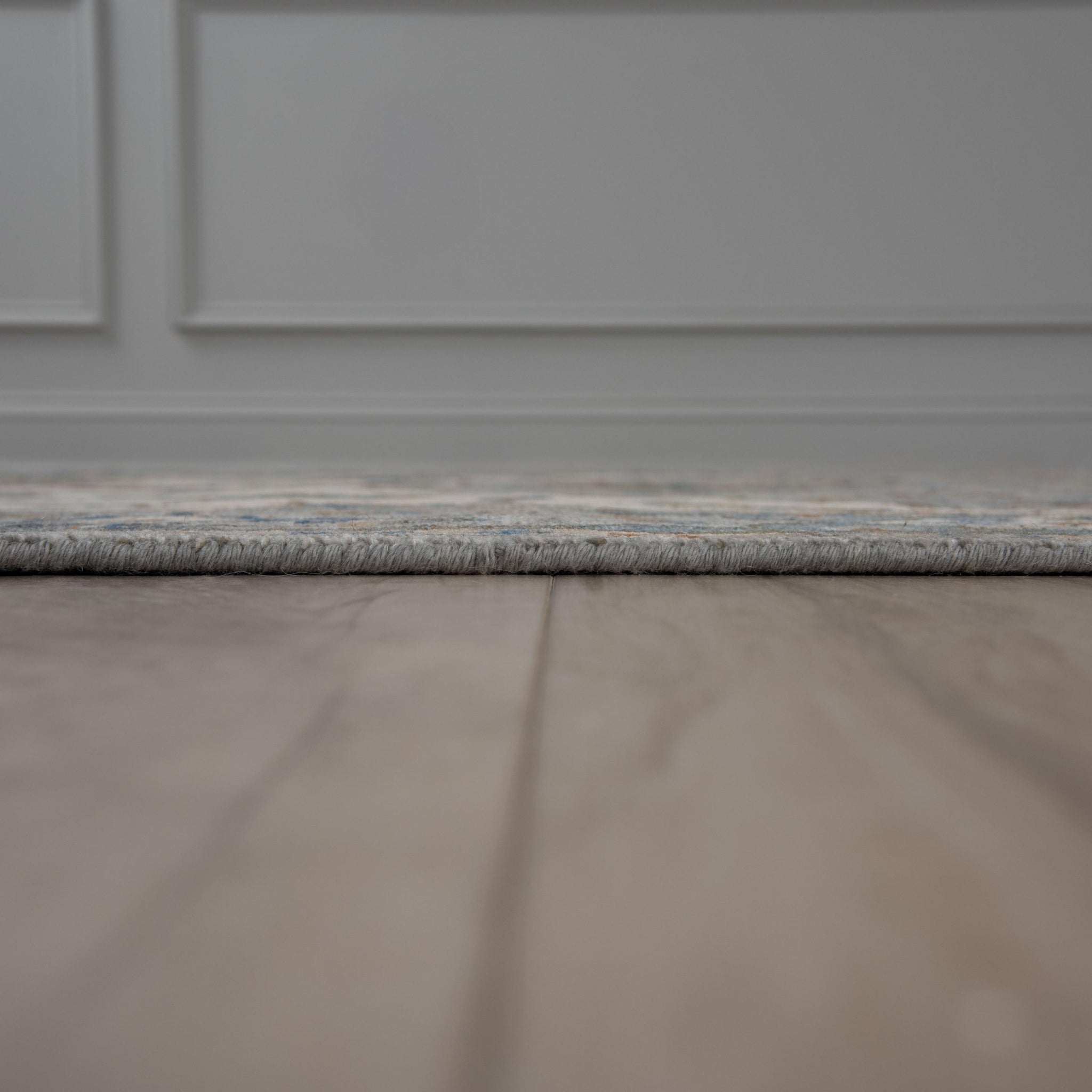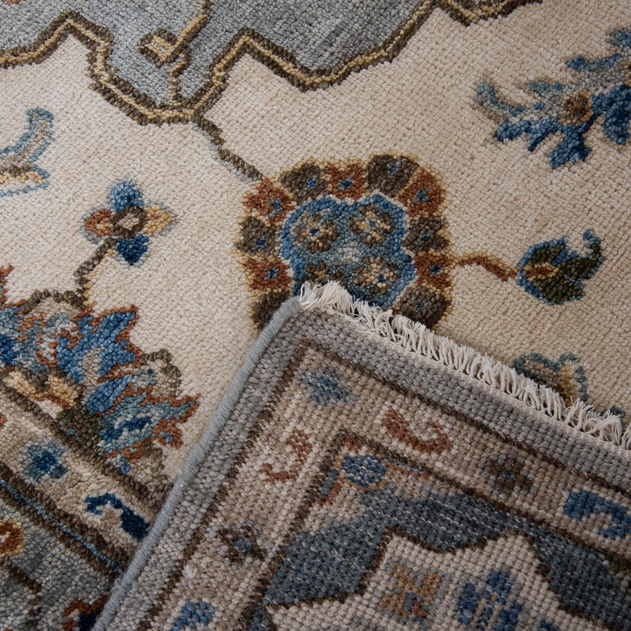 This hand-knotted classic Persian rug from the Rizzy Home Historia Collection is a timeless piece of art that will add refinement and sophistication to any room. The traditional intricate Persian design in a beautiful color palette of gray, ivory, and blue creates a stunning visual element in any interior design style—from rustic to contemporary. The 100% wool construction ensures durability for high traffic areas, in an area rug that is equally soft and plush. This rug adds warmth to any living space with iconic style.