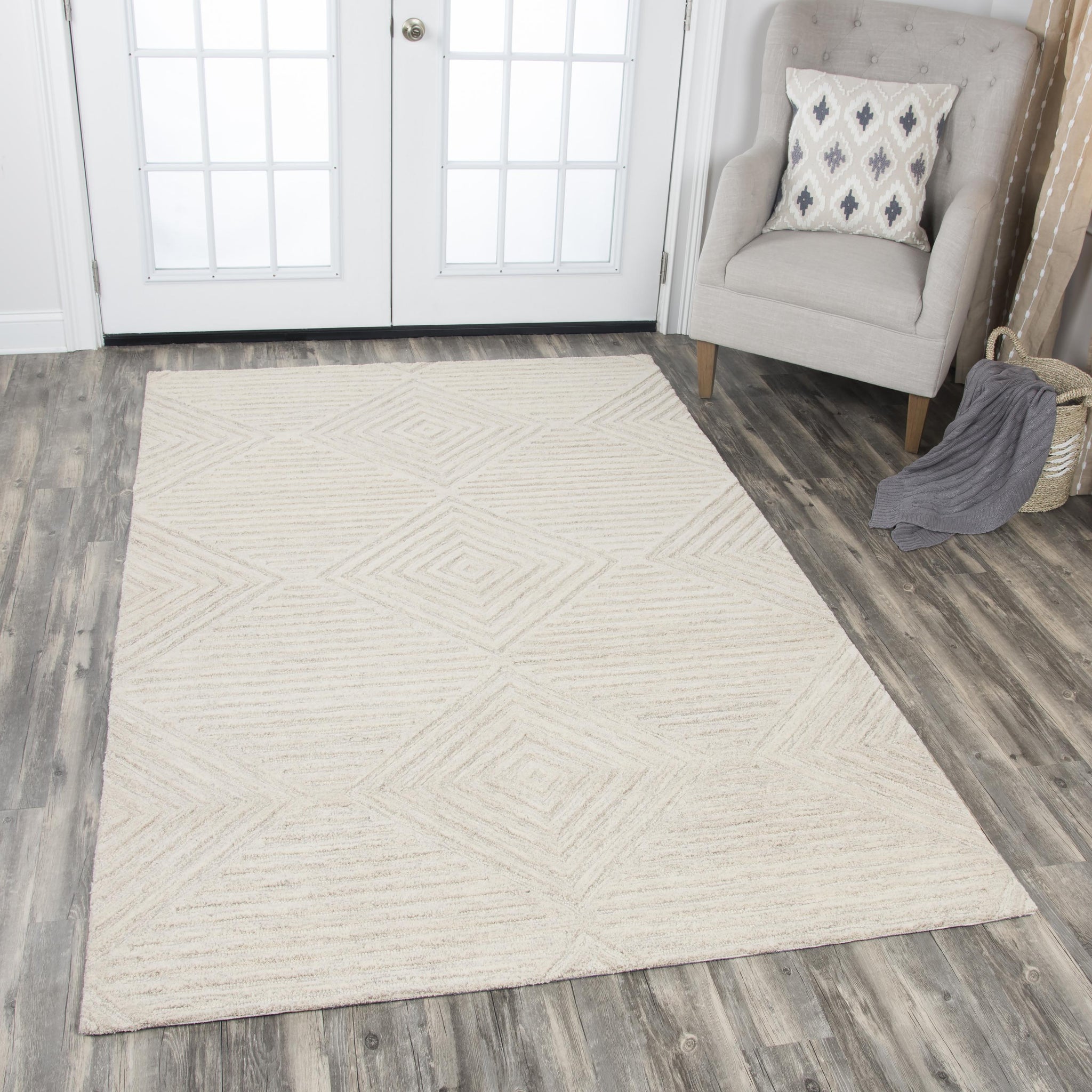 Add neutral, contemporary style to your home with the natural ecru and ivory tone-on-tone beauty of the Rizzy Home Idyllic Natural Solid Wool Rug. Hand-tufted in 100-percent wool, a combination of short loop and longer cut pile is used to create dimension in the modern geometrical design of the piece, finished with a clean edge. Bring thick texture and softness into your decor with this rug.