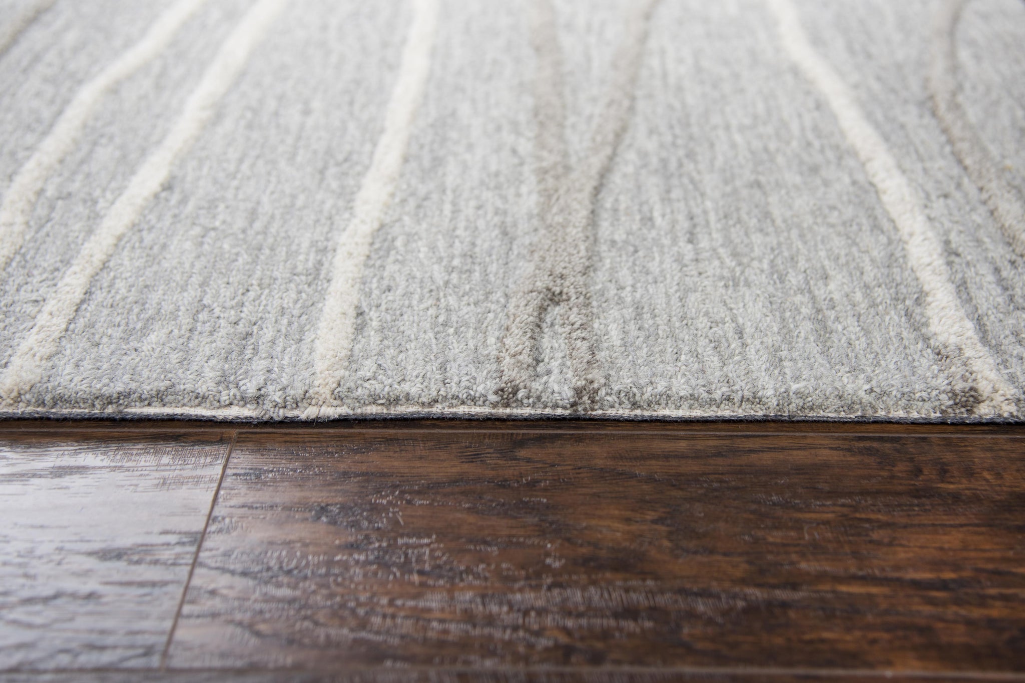 Create a restful yet contemporary sanctuary with the soothing wavy lines in the Rizzy Home Idyllic Grey Lines Wool Rug. Hand-tufted of 100-percent wool in short loop and taller cut pile, the subtle drama comes from grey and natural ivory harmoniously blended in this piece. Finished with a clean, modern edge -- you can complete the look of any room in your home.