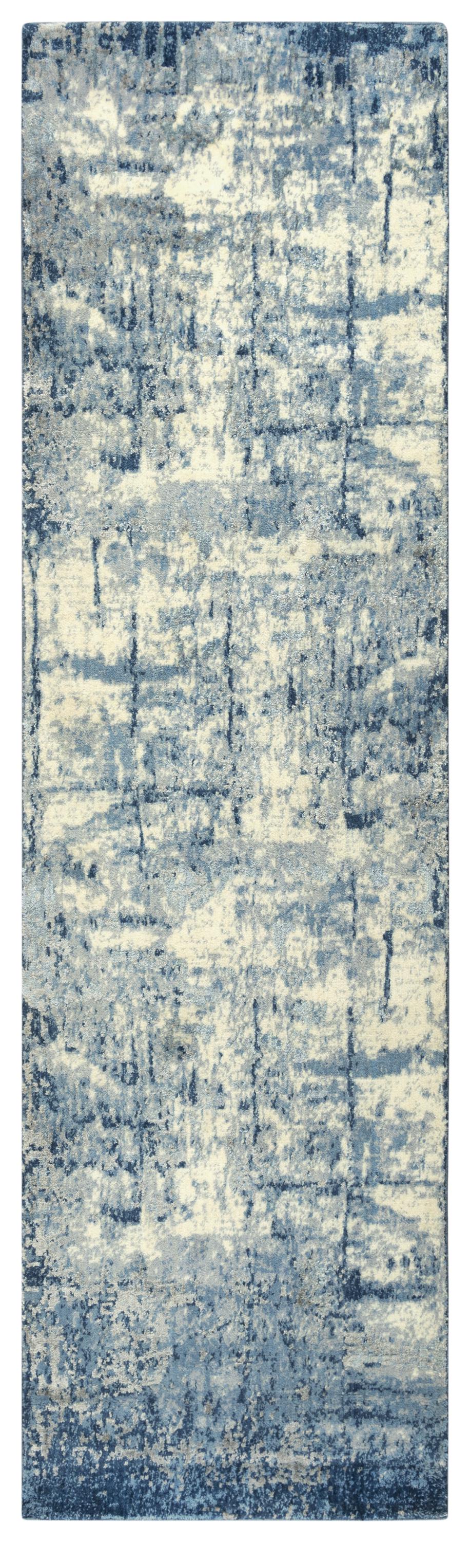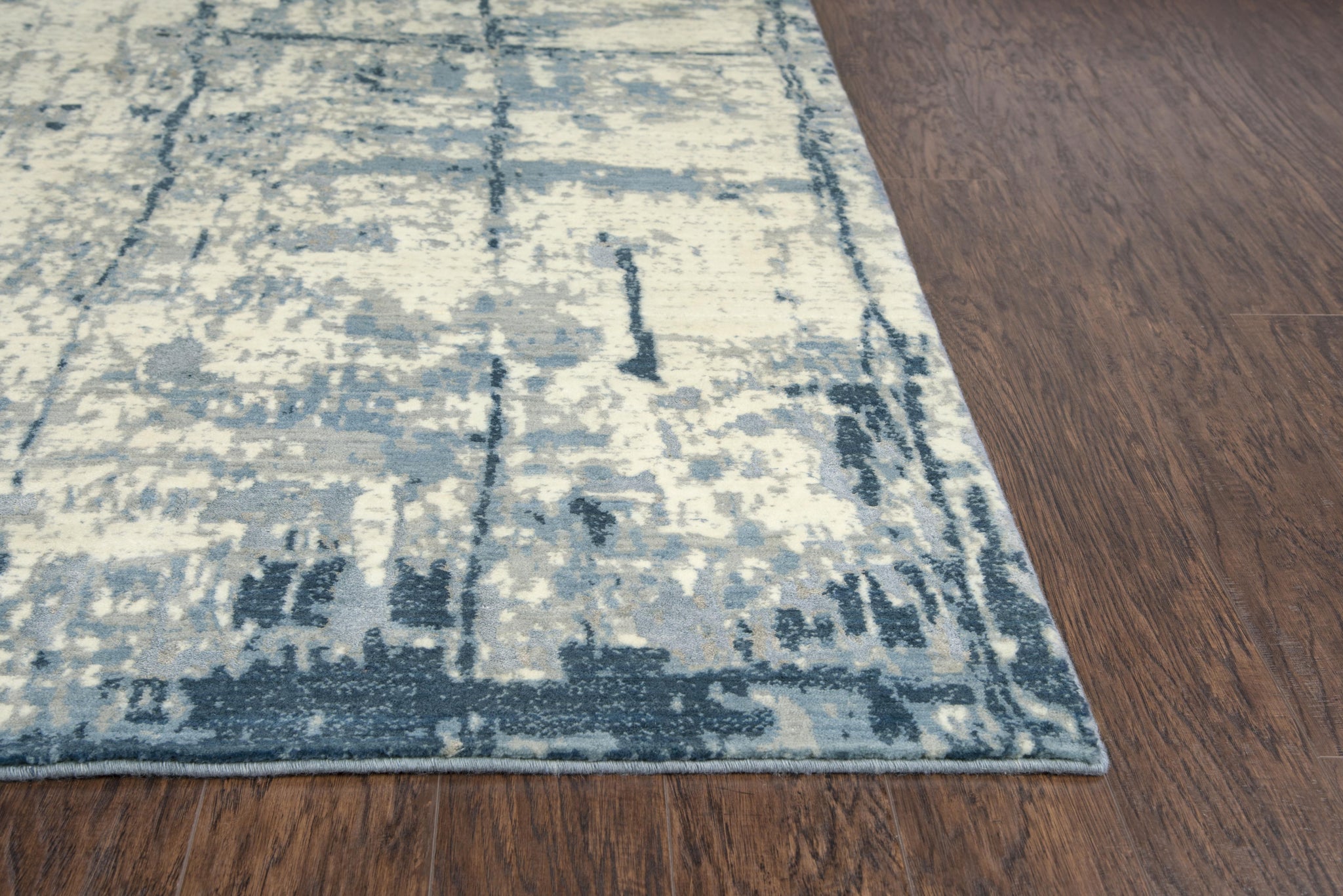 The Rizzy Home Impressions Blue, Grey, and Cream Rug makes a modern statement with a variegated blue backed by grey design created to mimic the look and feel of an authentic hand knotted rug. The New Zealand Wool has Tencel accents in a distressed, classical design with side woven edge and latex backing for overall style in your home or office.