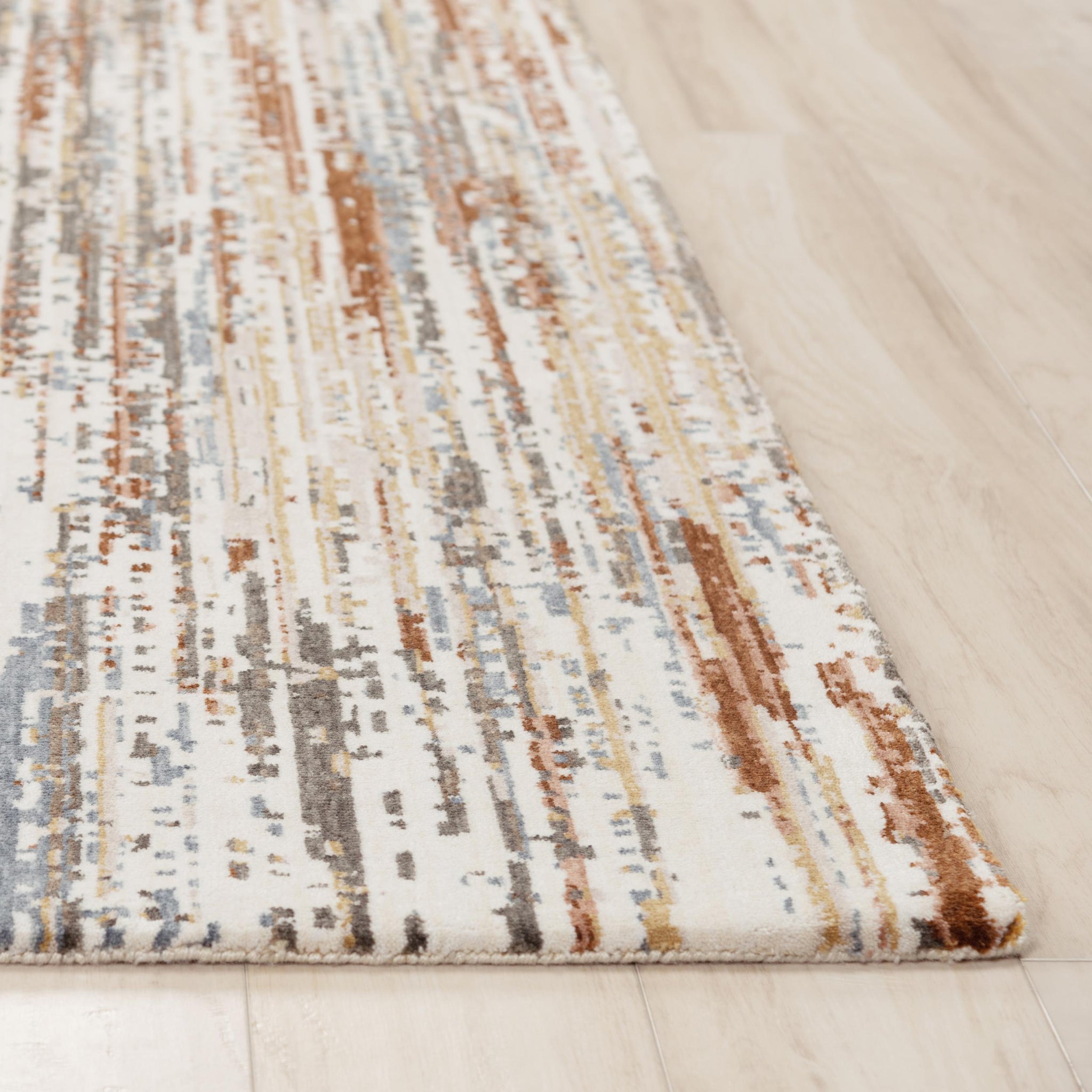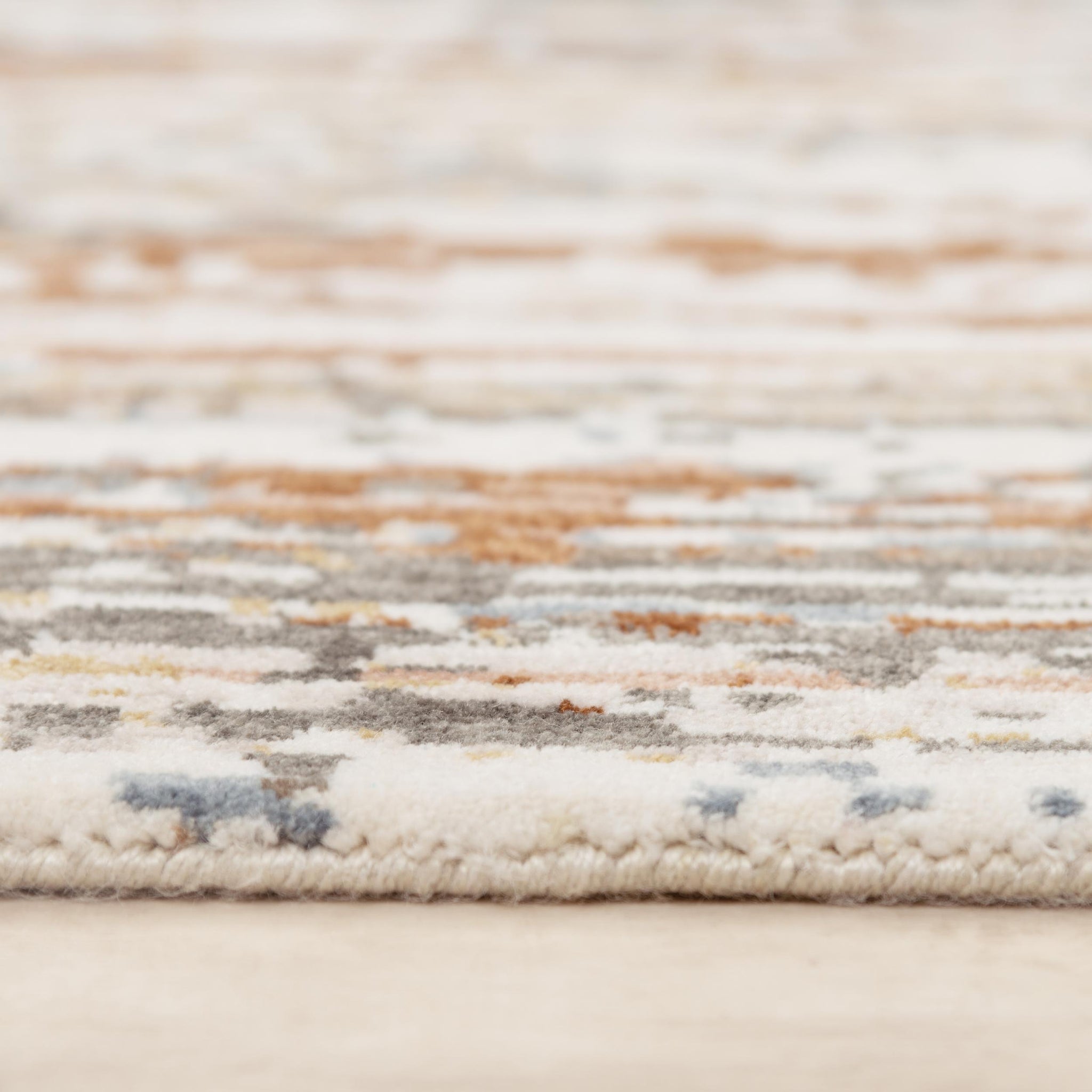 This abstract earth toned area rug from Rizzy Home’s Jasper Collection boasts an artistically inspired color palette of rust, ivory and steel grey tones in an intricate pattern. Its hybrid recycled polyester construction make it not only an eco-friendly option, but also ensure that it is easy to clean and ultra-durable for highly traveled areas. The eclectic color splash and contemporary design of this rug can support an array of interior styles and colors creating a truly transitional floor piece for any décor.