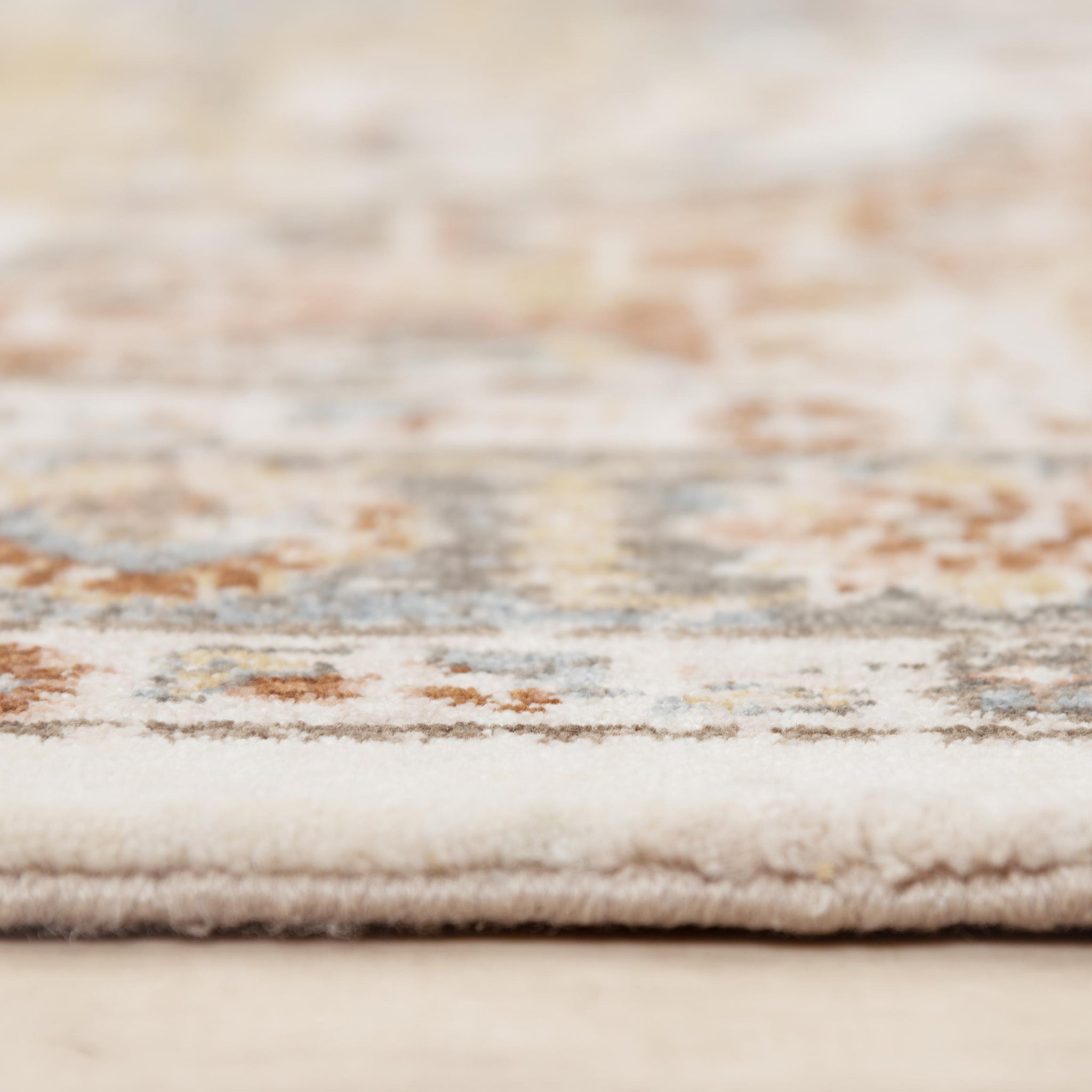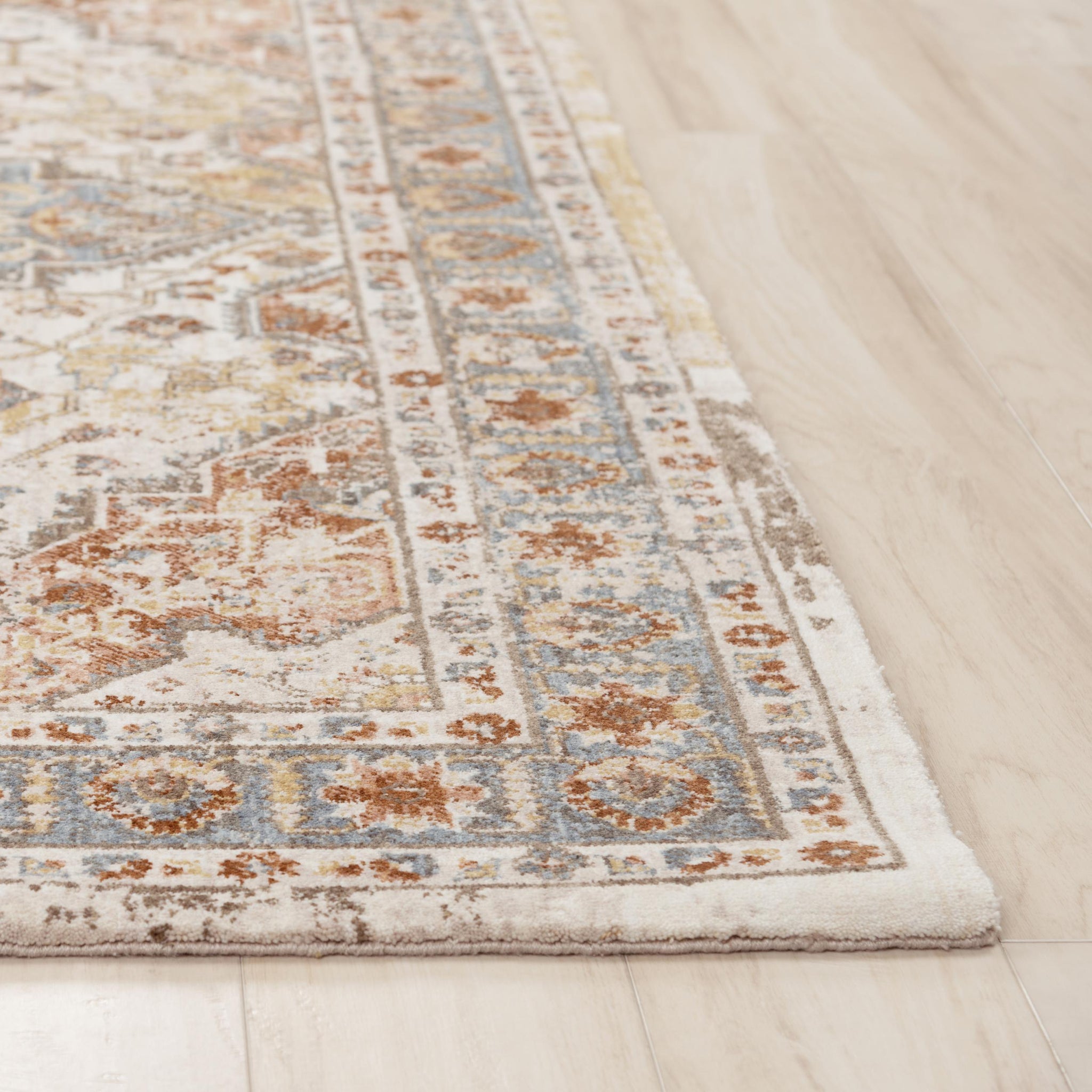 This Jasper Collection area rug from Rizzy Home features a terracotta multi-colored classic design with neutral colors in ivory, charcoal gray and rust in a stunning visual contrast that draws attention to the intricate Persian artistry. This rug is perfect for adding warmth and sophisticated elegance to any living space in a variety of decor styles. This hybrid construction rug is the perfect blend of classic style and sustainability. Made from 100% recycled polyester, it is not only durable but also eco-friendly. Classic style meets sustainable function.