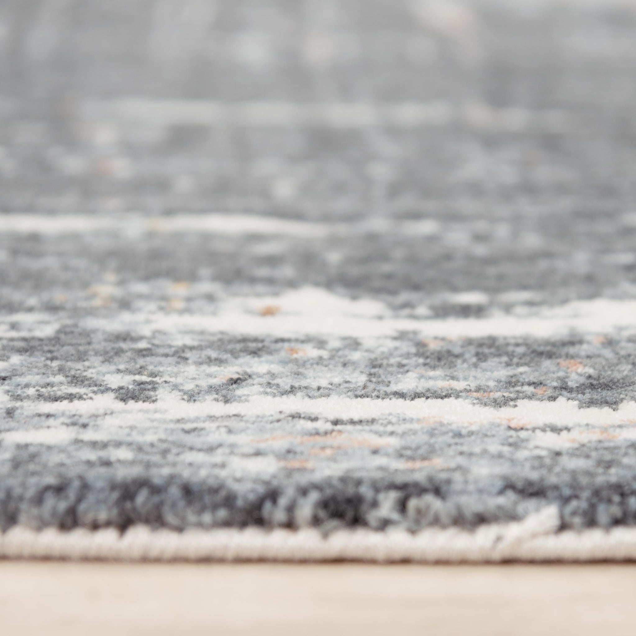 This beautiful abstract area rug from Rizzy Home’s exclusive Jasper Collection features a unique hybrid construction using 100% recycled polyester. The bold navy, gray and ivory build a stunning visual contrast that can complement any décor from classic to contemporary. This floor piece will make an artistic style statement in any room.